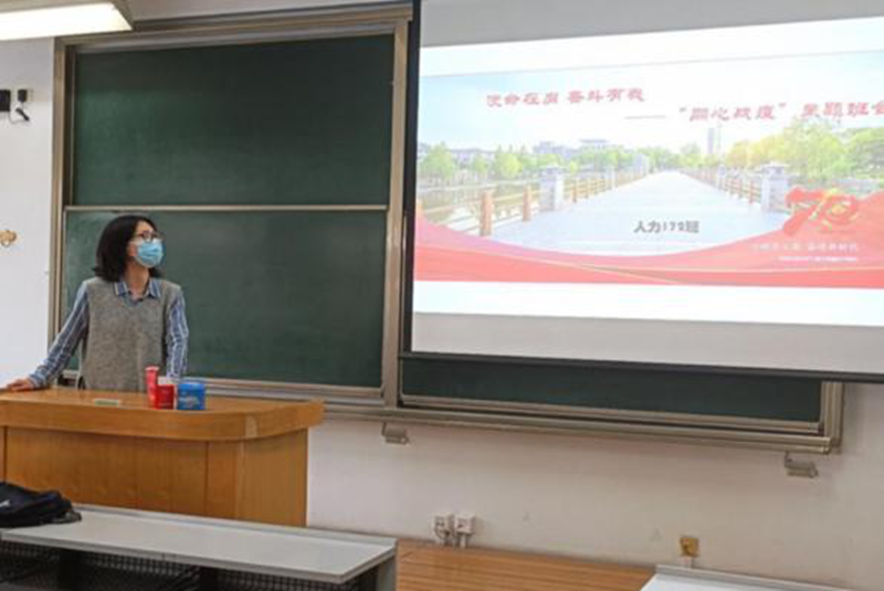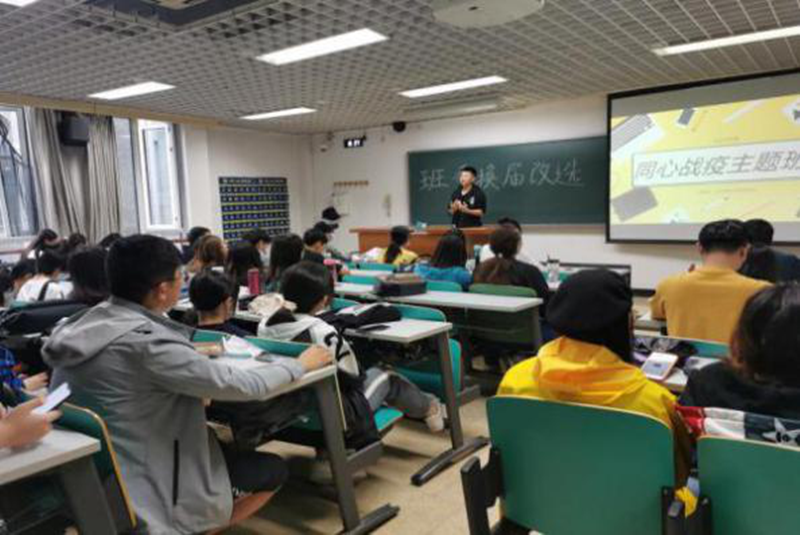 時隔9個月之后的見面讓老師和同學(xué)們都無比激動,為更好的增進感情、促進交流,推動班級事務(wù)的開展,本科40余個班級依然選擇了傳統(tǒng)的線下班會模式。人力172的同學(xué)們在文二樓教室由團支部副書記帶領(lǐng)全班同學(xué)共同學(xué)習(xí)習(xí)總書記給青年的回信;工商20全英班的同學(xué)們組織了主題座談會,在班主任的帶領(lǐng)下,同學(xué)們分享了抗疫期間身邊發(fā)生的感人故事和抗疫英雄的事跡,從平凡的角度講述了不平凡的故事,描述了身邊的共產(chǎn)黨員在疫情期間的那份責(zé)任心,令人心生敬畏;會計191在開展主題班會的同時進行了班委的換屆選舉,營銷19把這次班會當(dāng)做轉(zhuǎn)專業(yè)工作結(jié)束之前班級最后一次集體的大型活動,通過將班會和班級活動相結(jié)合的方式,增強了班級中每一位同學(xué)的責(zé)任感、使命感、歸屬感。