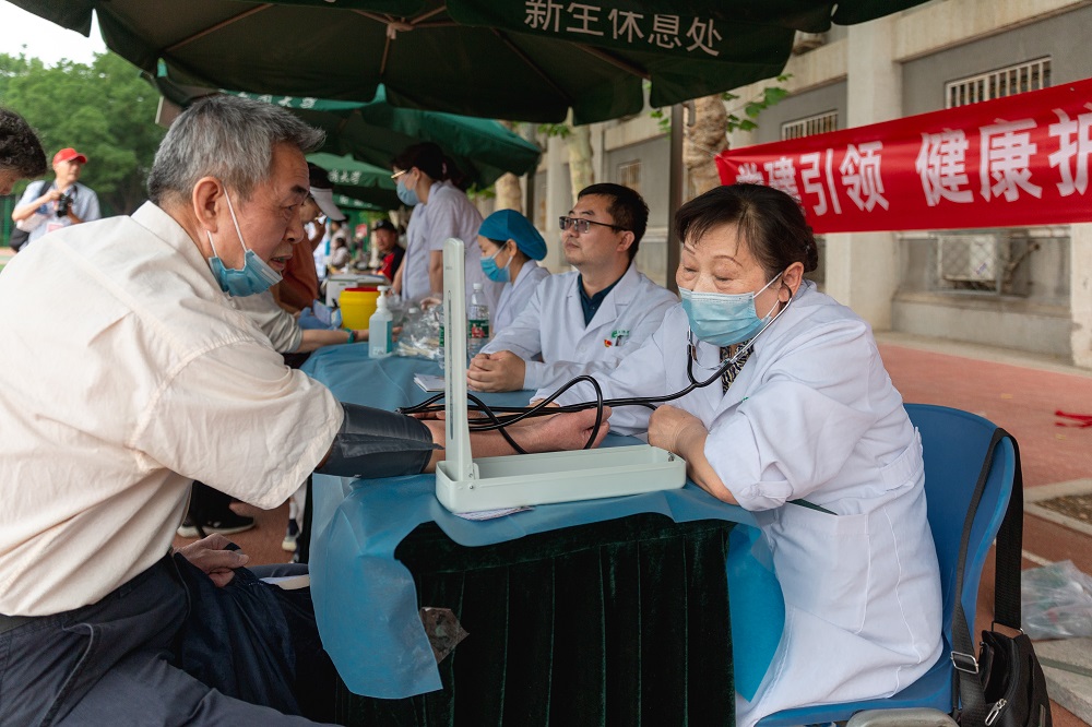 校醫(yī)院黨支部也在現(xiàn)場以“黨建引領,健康護航”為主題,開展了特別的健康關懷活動,旨在為離退休教職工提供全面的醫(yī)療健康服務,為老同志健康養(yǎng)老保駕護航。校醫(yī)院派出專家義診,包括測量血糖血壓、解讀體檢報告、結(jié)核病防治宣傳、醫(yī)保政策宣講以及健康咨詢等一系列溫馨服務。許多老同志表示,這樣的活動讓他們充分感受到了黨和政府的關懷,深切感受到學校對老同志的尊重與照顧。