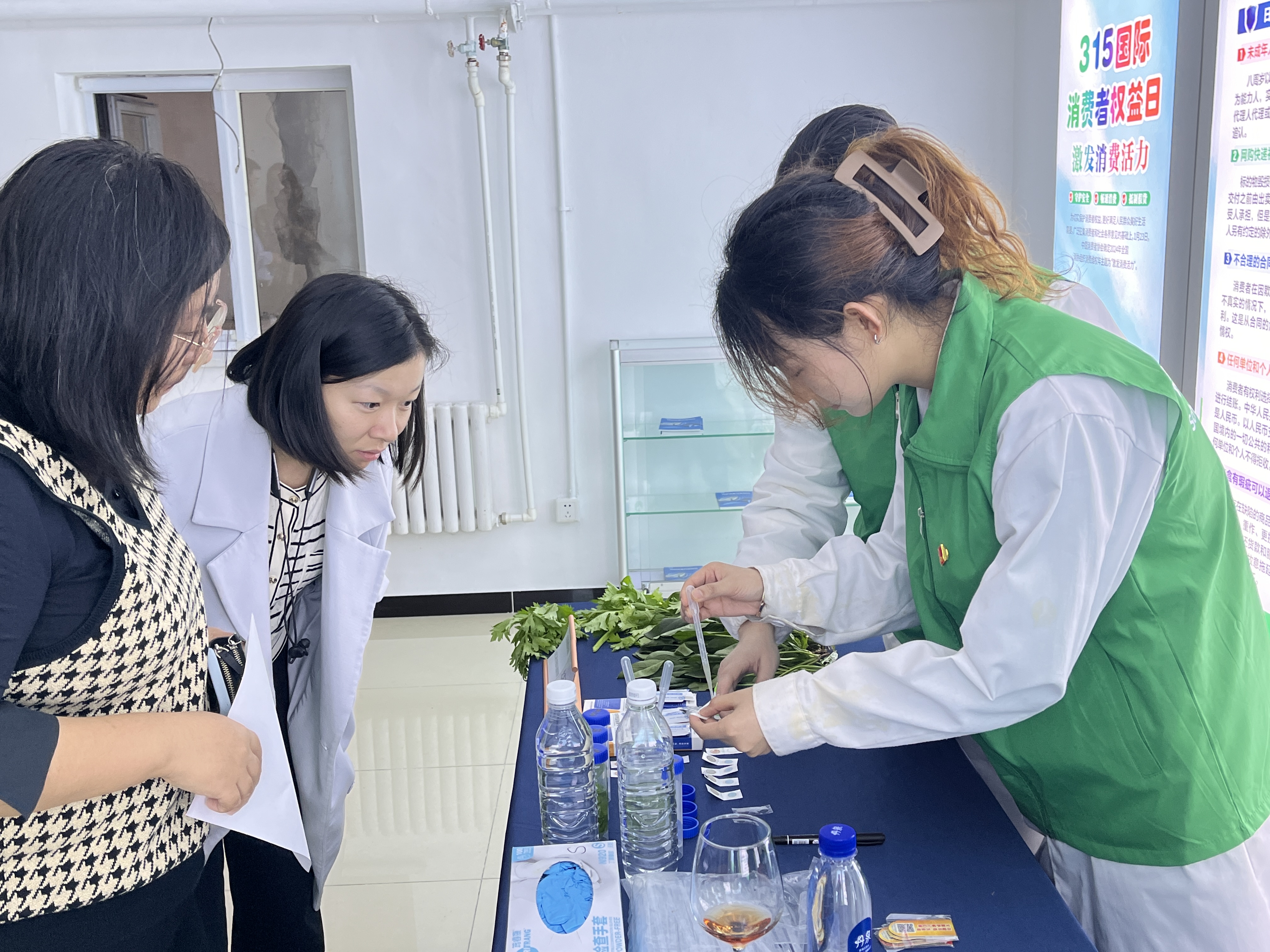 活動現(xiàn)場,科普志愿者們分組演示了蔬菜農(nóng)藥殘留快檢和蛋白質(zhì)檢測實(shí)驗,向現(xiàn)場嘉賓解答蔬菜采買和食用過程中遇到的疑惑,“面對面”反饋日常食品檢測結(jié)果,讓社區(qū)群眾“零距離”了解食品快檢工作,通過互動小游戲的方式,吸引現(xiàn)場社區(qū)群眾參與討論,為社區(qū)群眾講解科普知識,進(jìn)一步提高群眾食品安全科普知識水平。