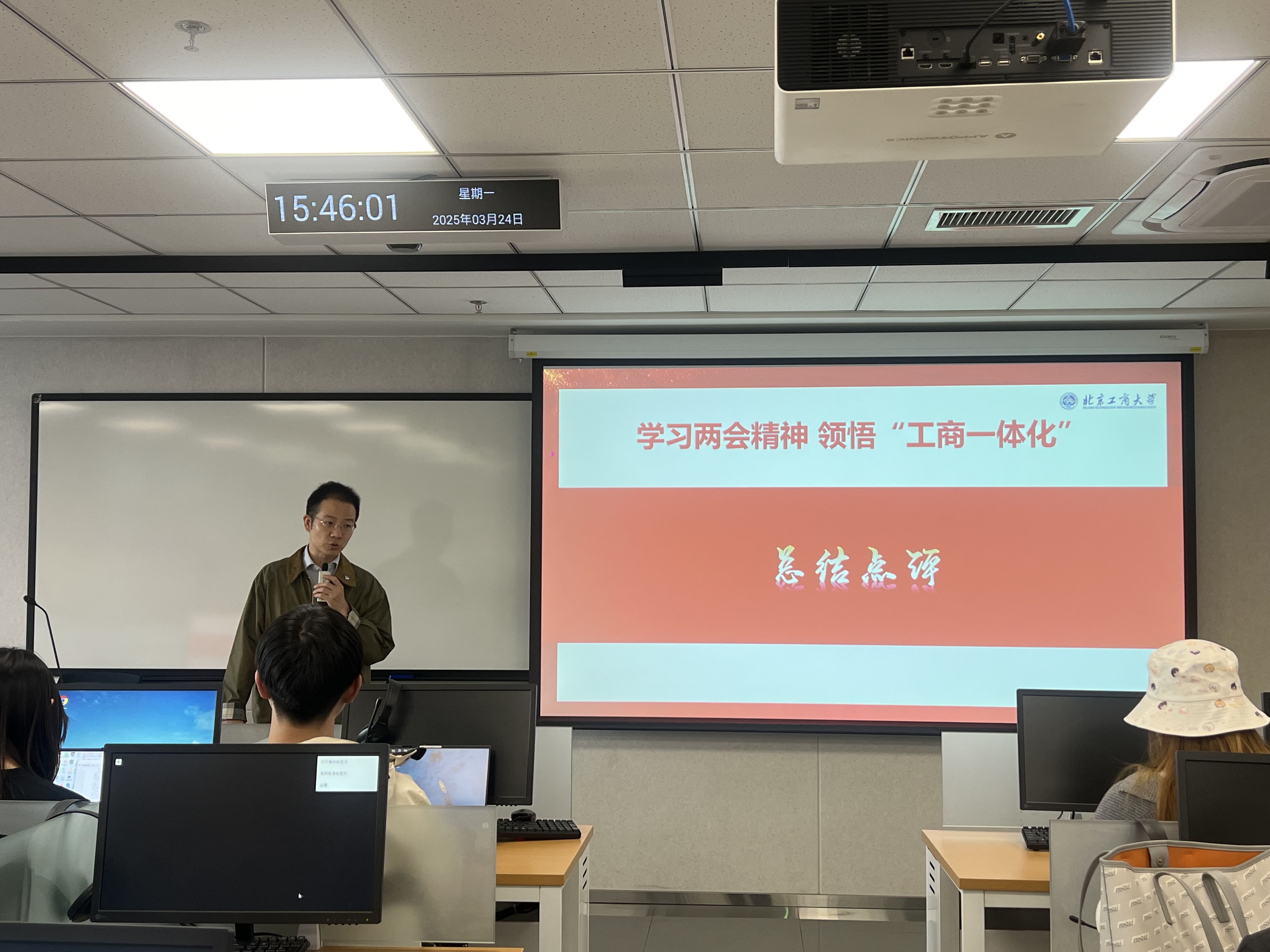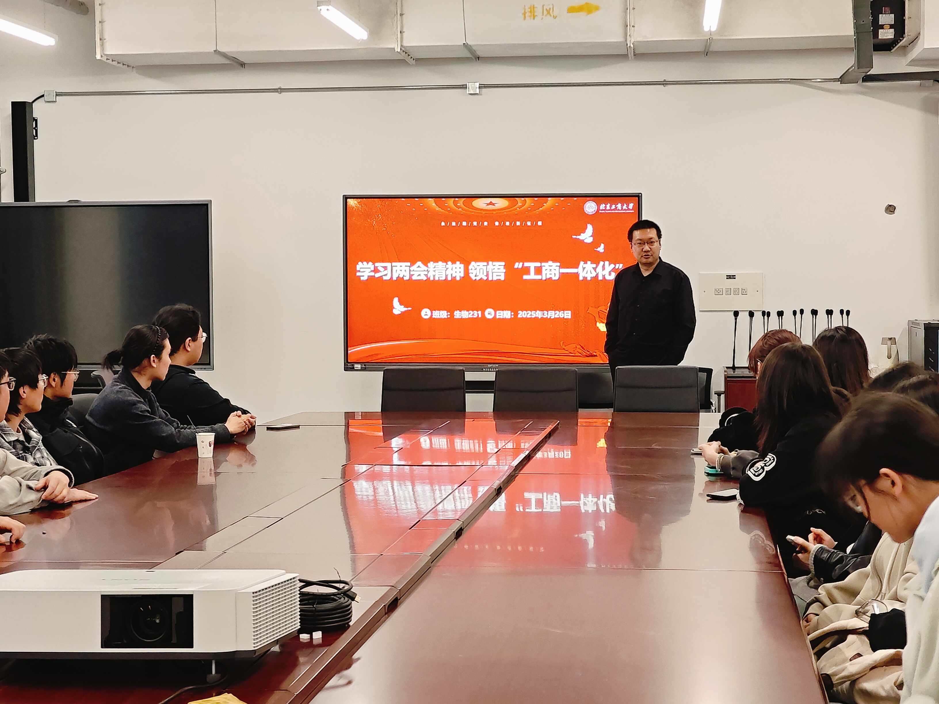 學(xué)校組織“學(xué)習(xí)兩會(huì)精神,領(lǐng)悟‘工商一體化’”主題班會(huì)
