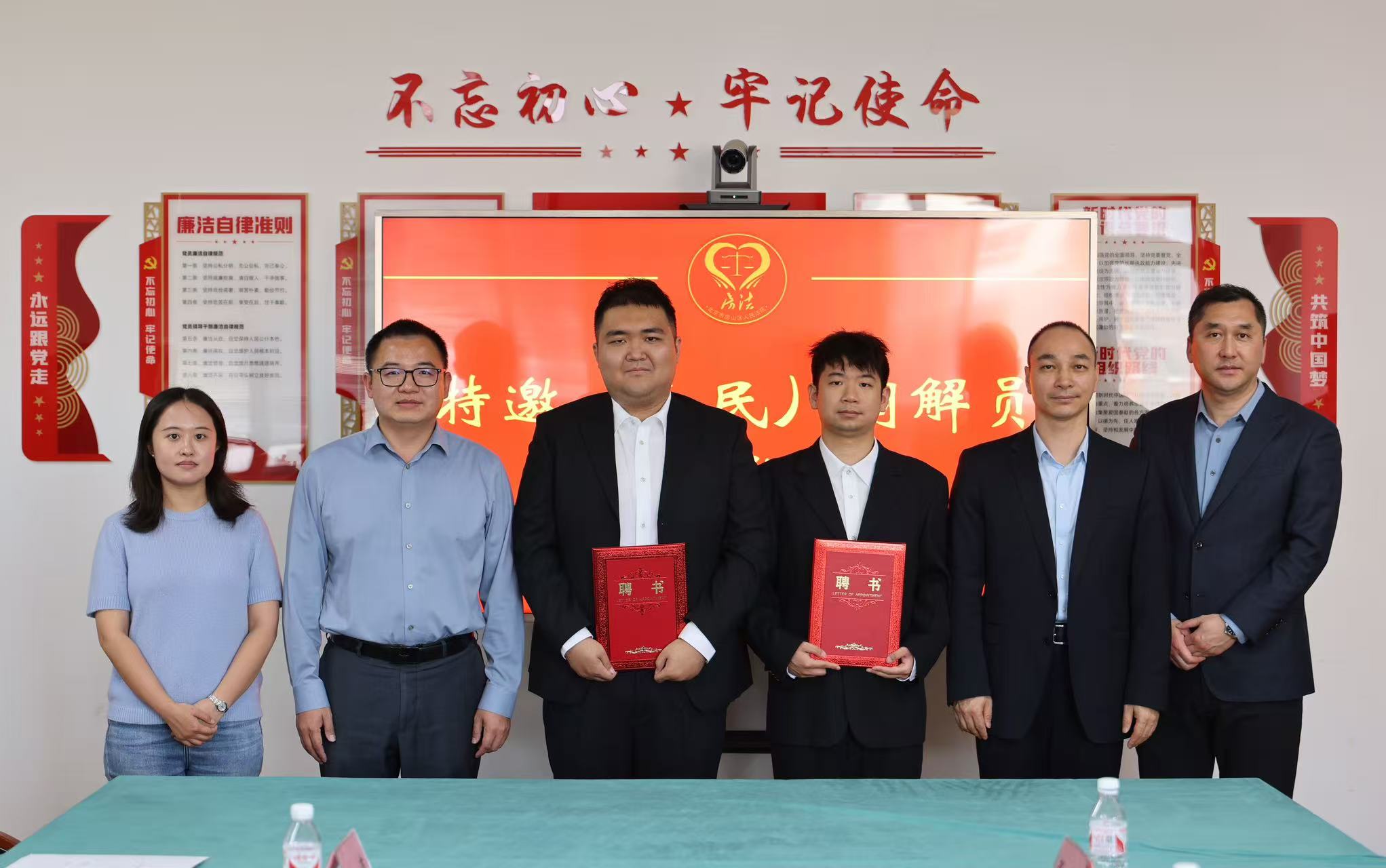 4月17日,首批“雙證”在校研究生特邀(人民)調解員受聘儀式在北京市房山區人民法院多元解紛訴調對接中心舉行。我院兩名研究生被聘為房山法院特邀調解員、房山區中和人民調解委員會人民調解員。房山法院黨組書記、院長齊瑩,黨組成員、副院長沈波,房山區司法局黨組成員、副局長韓笑怡,法學院黨委書記胥陽,院長陳敦,學校基層法治研究中心主任、房山法院掛職副院長張龍,就業專項輔導員劉心瑤出席受聘儀式。