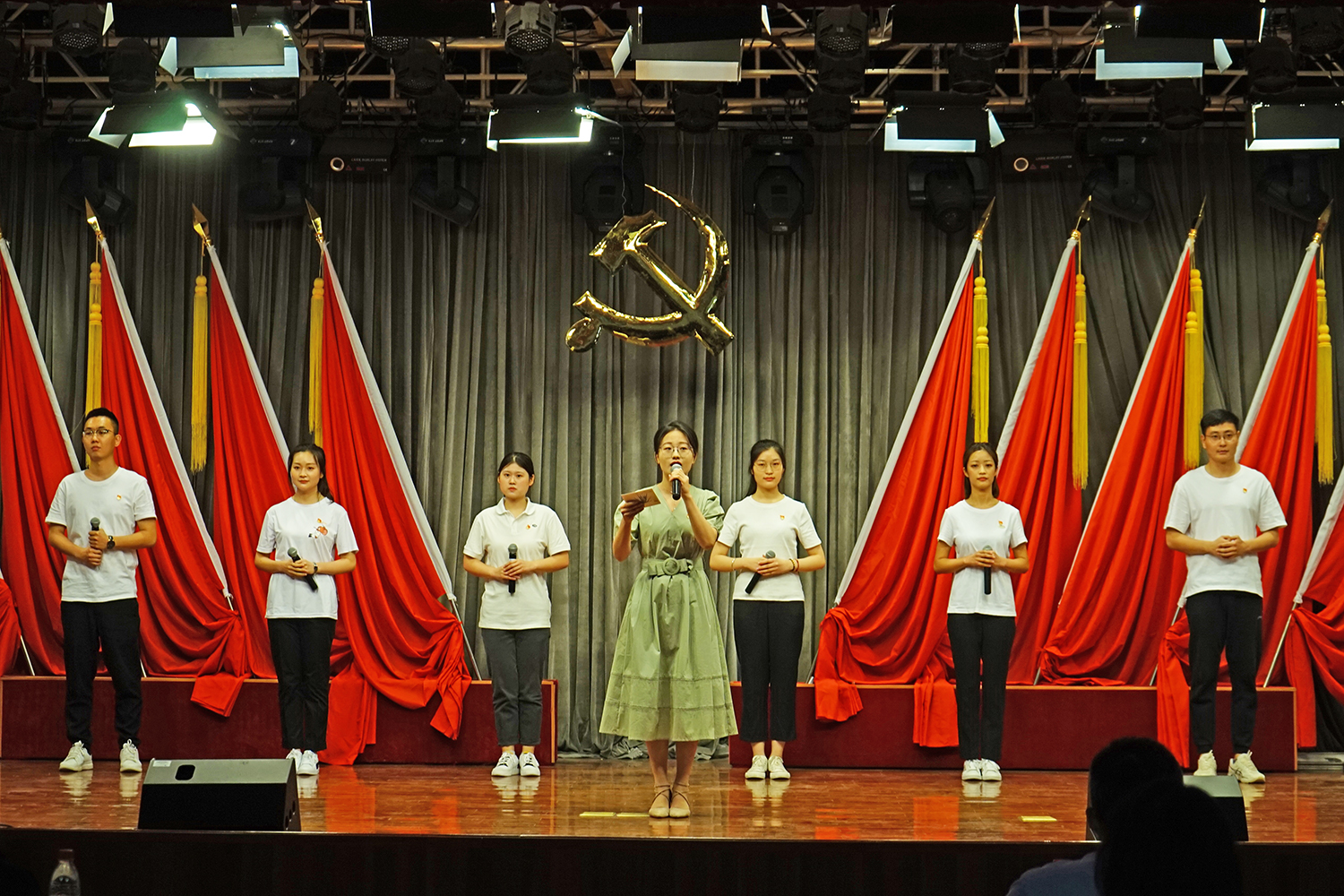 熟悉的旋律《紅旗飄飄》響起時,引起現場觀眾共鳴,不少觀眾跟著旋律唱了起來,將現場氣氛推向了高潮。本次活動以同學們喜聞樂見的匯演形式,帶領同學們了解黨史、學習黨史、感悟黨史,傳承紅色精神。