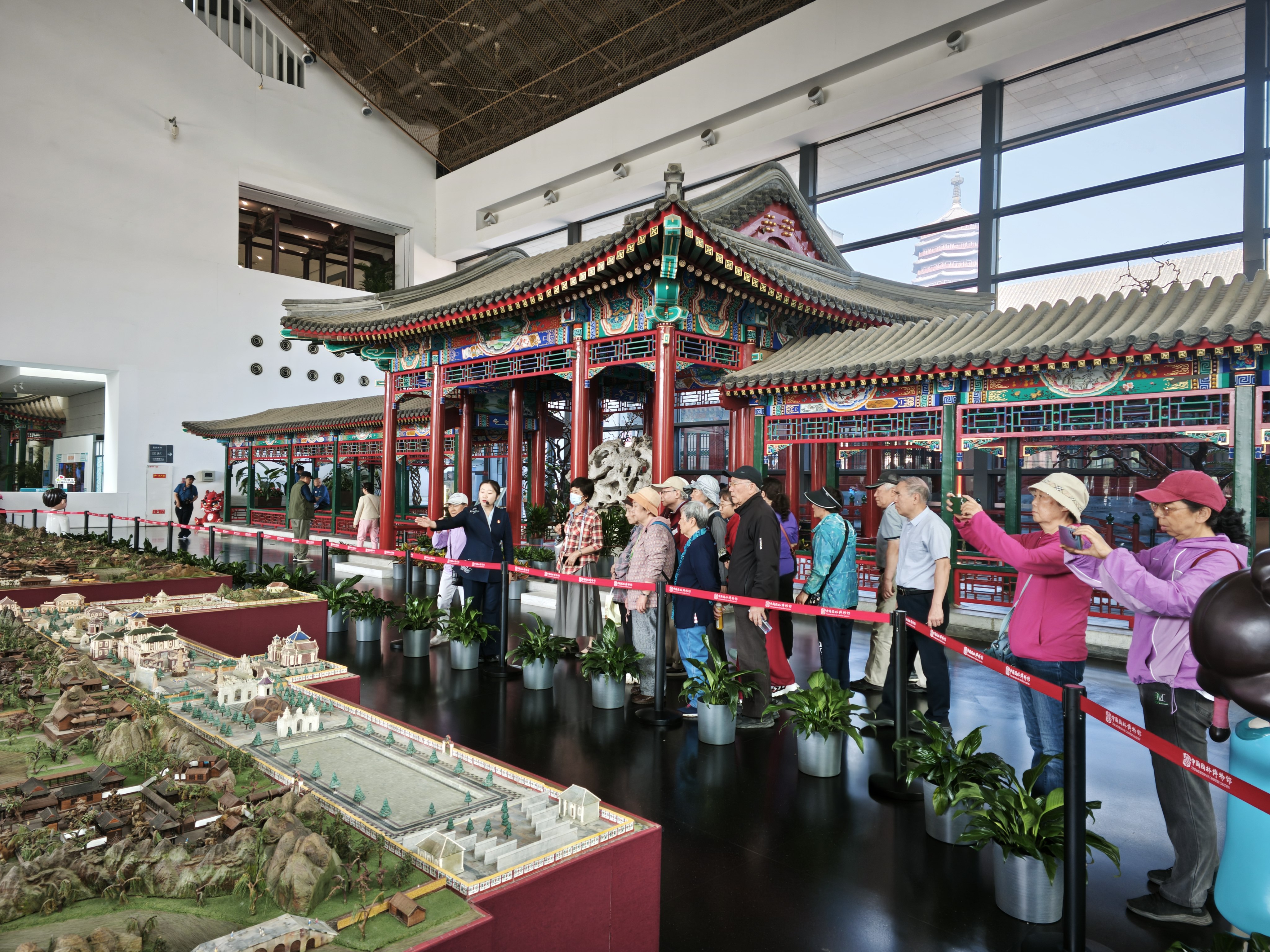 傳承中華智慧,共建理想家園。中國園林博物館被譽為“有生命”的博物館,館內豐富的園林景觀和文物藏品展現了中華文化的博大精深。老同志們參觀了古代園林廳、近現代園林廳等展廳,深入了解了中國園林的發展脈絡。在室外展區,他們欣賞了孔雀開屏、野鴨嬉戲的自然美景。體力較好的更是登高至染霞山房,俯瞰園林全景,感受人與自然和諧共生的理想家園。