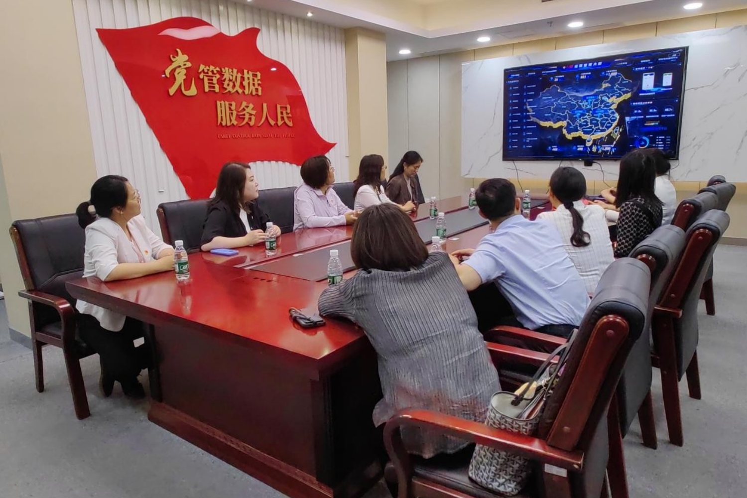人民網·人民數據孔凡菊對北京工商大學一行的到來表示熱烈歡迎,并詳細介紹了人民數據作為人民日報社、人民網旗下“黨管數據”核心平臺的戰略定位。她指出,人民數據以“數據國家隊,數字經濟高端智庫”為發展目標,在黨建信息化、政務數據治理、輿情分析等領域積累了豐富經驗。在展廳參觀環節,黨員們通過視頻短片、案例講解及平臺演示,系統了解了人民數據在產業數字化轉型、社會治理智能化中的創新成果。