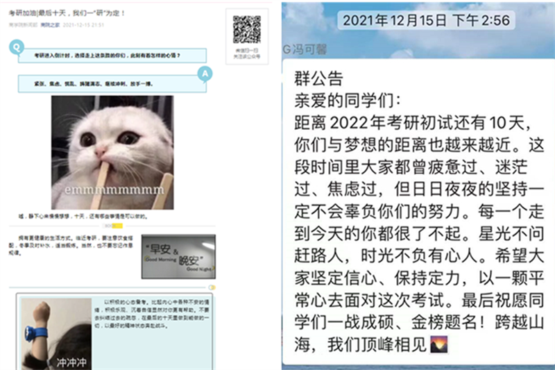 與此同時,商學(xué)院也通過年級輔導(dǎo)員為考研學(xué)子發(fā)送溫馨提醒的短信給他們加油鼓勁;學(xué)院通過“商院之家”微信公眾號推出提醒和祝福,為考研的學(xué)生送出最堅(jiān)實(shí)的支持。希望商院考研學(xué)子邁向新的人生階段階梯的路上,要相信拼搏奮斗在圖書館的時光,都會化為黎明的第一縷光,點(diǎn)亮未來!