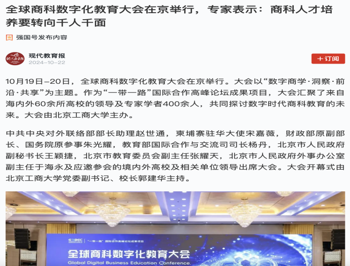 通過媒體的廣泛報道,全球商科數字化教育大會的影響力得到了進一步放大。此次大會的成功舉辦,不僅提升了北京工商大學的國際知名度和影響力,更為推動全球商科教育的發展注入了新的活力和動力。