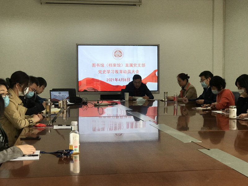 4月8日下午,圖書館(檔案館)直屬黨支部黨史學習教育動員大會在良鄉校區舉行,圖書館(檔案館)直屬黨支部書記韓軍作學習黨史教育動員講話。館領導王曉華、張凱偉、張斌、劉亮及全體黨員參加大會。副書記李艷芬主持會議。