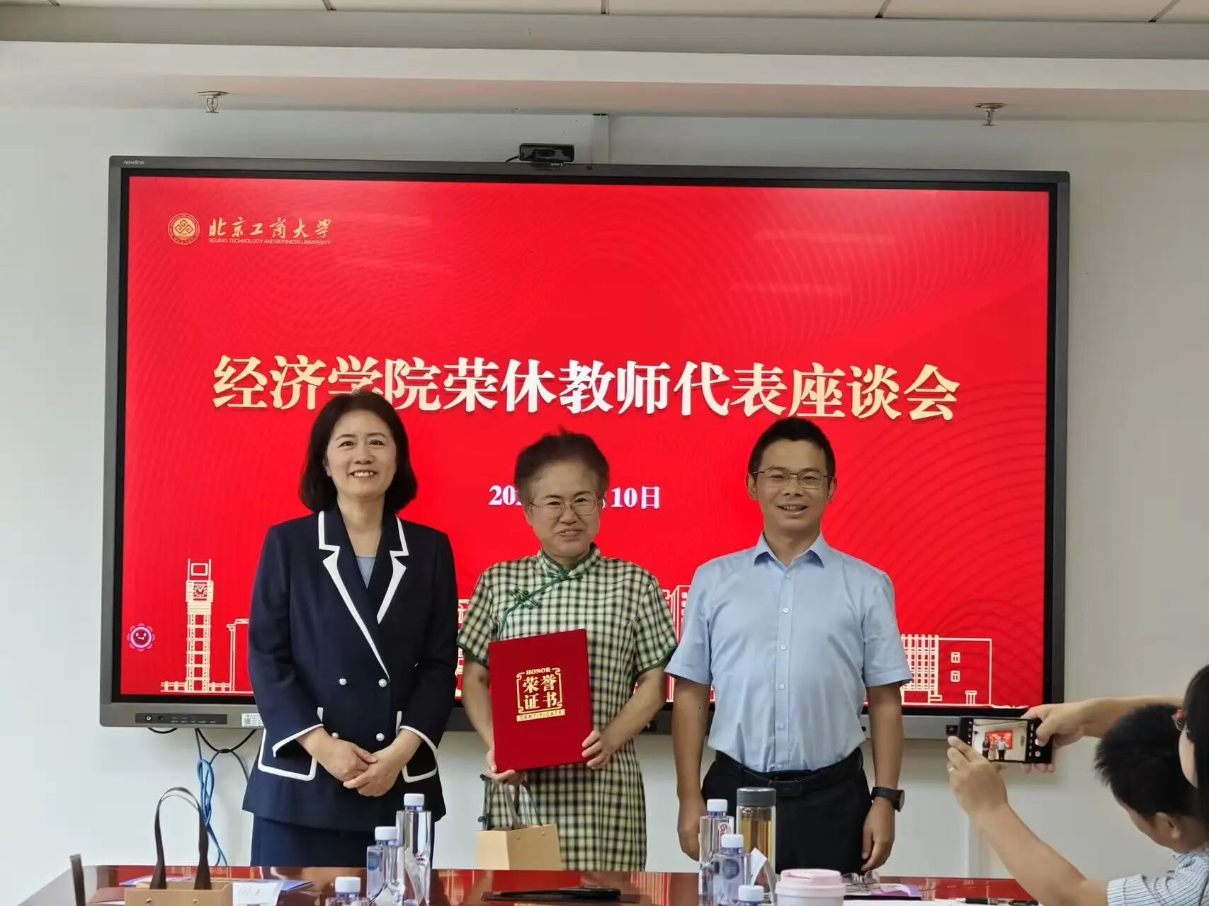 感恩奉獻,致敬芳華。在第 41 個教師節來臨之際,9月10日下午,經濟學院在良鄉校區學院會議室召開2025年榮休教師座談會,向為學院發展傾注畢生心血的榮休教師致以節日的問候與崇高的敬意。2025年榮休教師代表楊德勇、栗書茵、馬乃云、吳強、潘宏,學院黨委書記張春萍,執行院長詹新宇,副書記李艷春,副院長牛曉燕、許敬軒、馬雪嬌,中青年教師代表郭娜、張正平、鄧磊、徐芬及新入職教師參加座談會。會議由馬雪嬌主持。