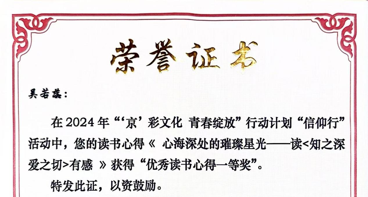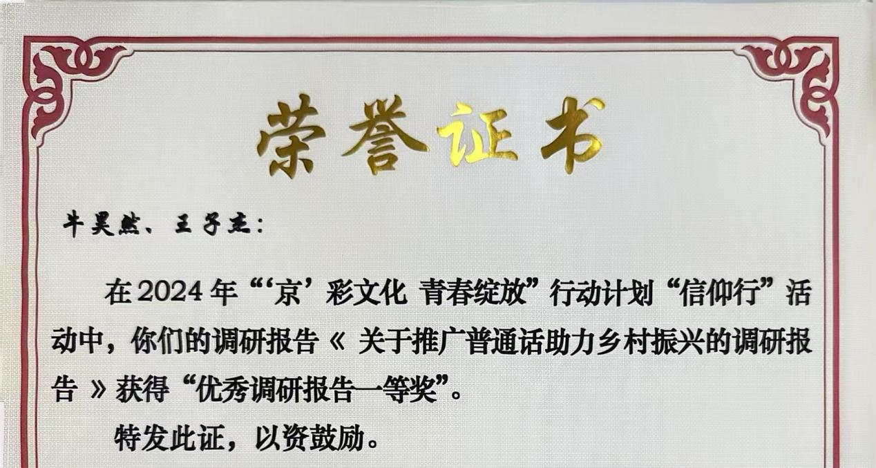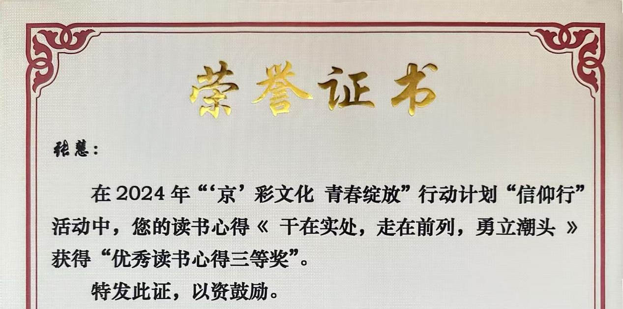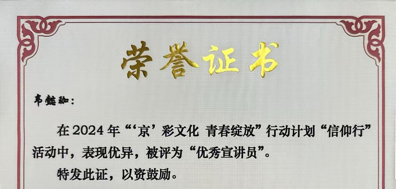 近日,由市委宣傳部、市委教育工委、北京市社會科學院(市委講師團)聯合主辦的“‘京’彩文化 青春綻放”行動計劃之“信仰行”2024年總結2025年工作部署會公布系列活動評獎結果,我校獲得多個獎項。