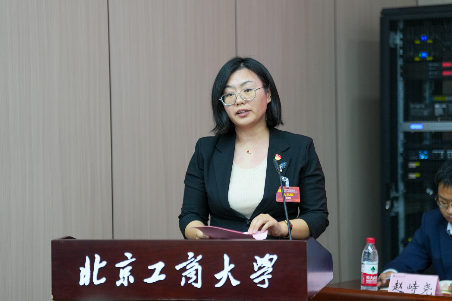 12月4日,中國共產黨北京工商大學計算機與人工智能學院黨員代表大會在良鄉主校區召開,學校黨委常委、副校長鄭文紅同志出席大會并講話。黨委組織部副部長劉玢、學院全體黨員代表參加了大會。會議由學院執行院長李海生主持。