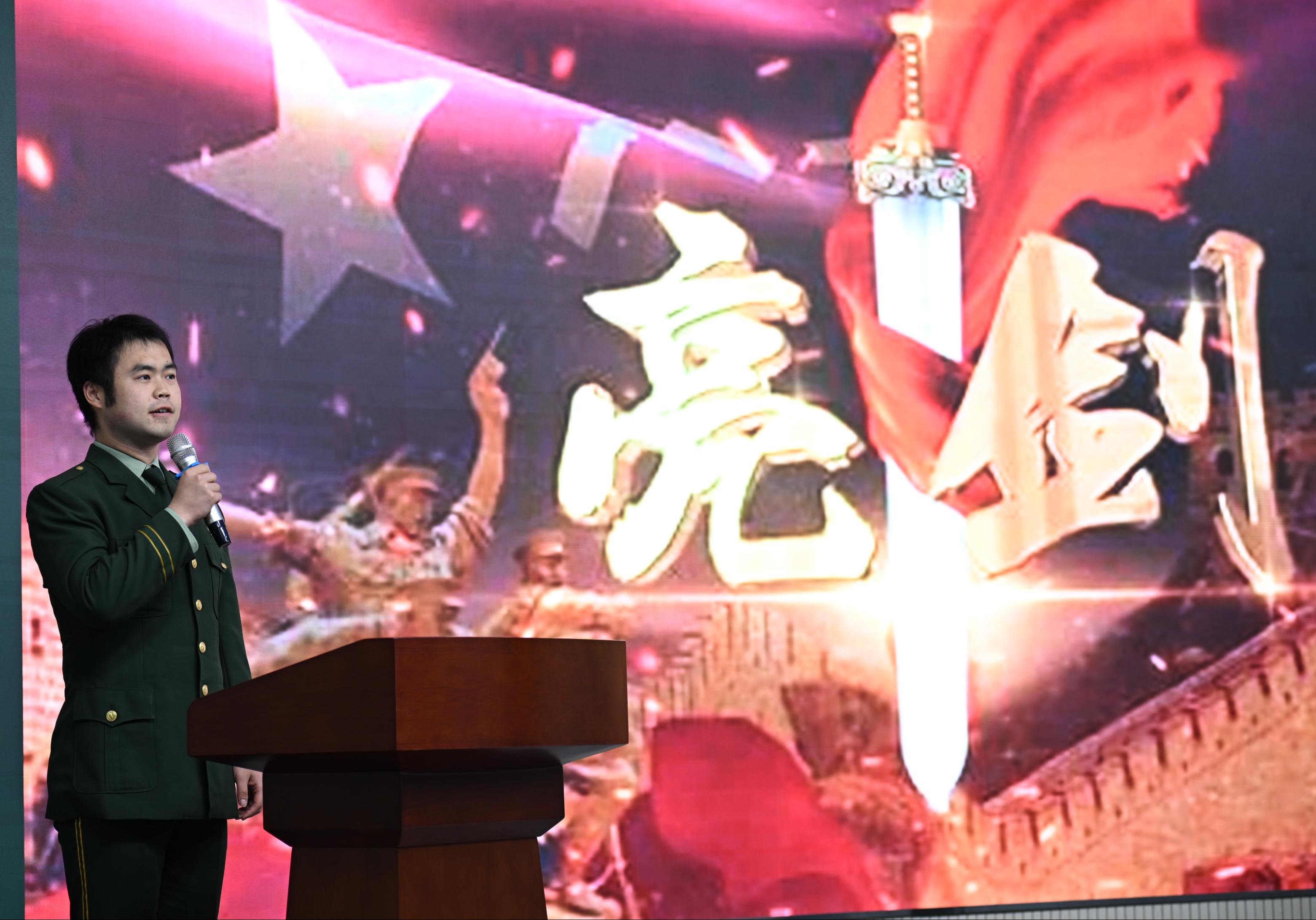 在“愛(ài)國(guó)國(guó)防”主題演講比賽環(huán)節(jié),退伍大學(xué)生郝樂(lè)之、李學(xué)慧和民兵連隊(duì)員趙馨圍繞“抗日英模故事”主題,分別為現(xiàn)場(chǎng)師生講述了楊靖宇、趙一曼和陳若克三位英模烈士的感人故事,號(hào)召青年學(xué)子傳承抗戰(zhàn)精神,向英烈學(xué)習(xí),矢志奮斗;退伍大學(xué)生王媛媛、民兵連隊(duì)員謝雨含和黃鍇程選擇“抗日歌曲傳頌”主題,帶領(lǐng)大家重溫《黃河大合唱》《義勇軍進(jìn)行曲》《松花江上》三首紅色歌曲的歷史背景和創(chuàng)作歷程,彰顯了中華民族不畏強(qiáng)敵、不懼風(fēng)險(xiǎn)、敢于斗爭(zhēng)、勇于勝利的風(fēng)骨和品質(zhì);退伍大學(xué)生劉華鑫、曹振方、趙耀祖和姜良正分別講述了“我的軍旅生涯”,他們用鮮活的軍旅故事,為大家?guī)?lái)了他們從大學(xué)生成長(zhǎng)為中國(guó)軍人的蛻變歷程,他們以自己的實(shí)際行動(dòng)踐行了“清澈的愛(ài),只為中國(guó)”的青春誓言。