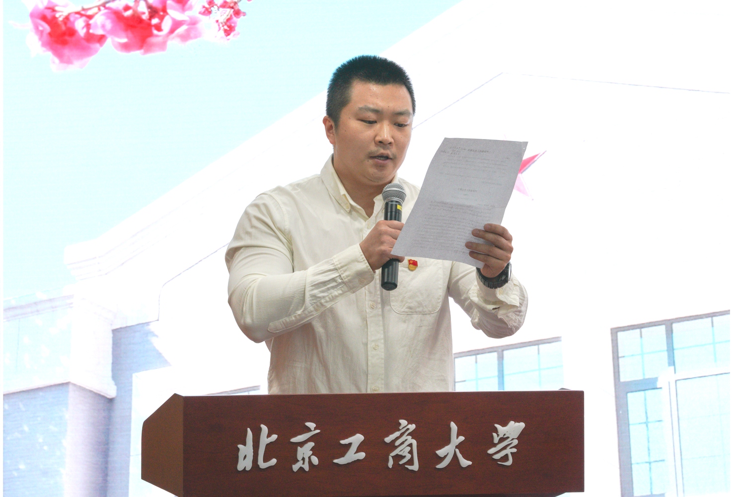 在研究生院李昀澄流暢自然的主持下,五名青年黨員聲情并茂地將書中的人物故事徐徐鋪展開來。人事處李昊哲誦讀了物理學家和教育家嚴濟慈79歲高齡時遞交的《入黨志愿書》。耄耋之年,壯心不已,這位成就斐然、德高望重的科學家用一生的探索,為自己找到了光榮的歸宿,其覺悟境界令人敬佩不已。學生處黨浩生動傳神地朗讀了一封家書《毛岸英致表舅》,信中毛岸英斷然拒絕了舅父想要在長沙謀取官職的不正當要求,烘托出毛岸英一心為公的人民立場和坦蕩無私的革命者形象。國際交流與合作處劉倩穎將美國著名作家和新聞記者埃德加?斯諾支持幫助中國的深厚情誼娓娓道來,從特定視角感受黨的百年艱辛和百年輝煌,同時學習如何向世界講好中國共產黨的故事。學校辦公室劉禹孜深情地講述了無產階級革命家、教育家、新中國高等教育的開拓者吳玉章先生的感人事跡,“創業難,守業更難,須知物力維艱,事事莫爭虛體面;居家易,治家不易,欲自我身作則,行行當立好規模”,將吳玉章先生的良好家風體現得淋漓盡致。黨風政風連著社風民風,作風建設只有進行時,沒有完成時,黨委宣傳部吳慧中深沉有力地朗讀了評論文章《八項規定改變中國》,昭示了解決大黨獨有難題的清醒和堅定,即始終保持自我革命的斗爭精神,不斷書寫“百年恰是風華正茂”的傳奇。