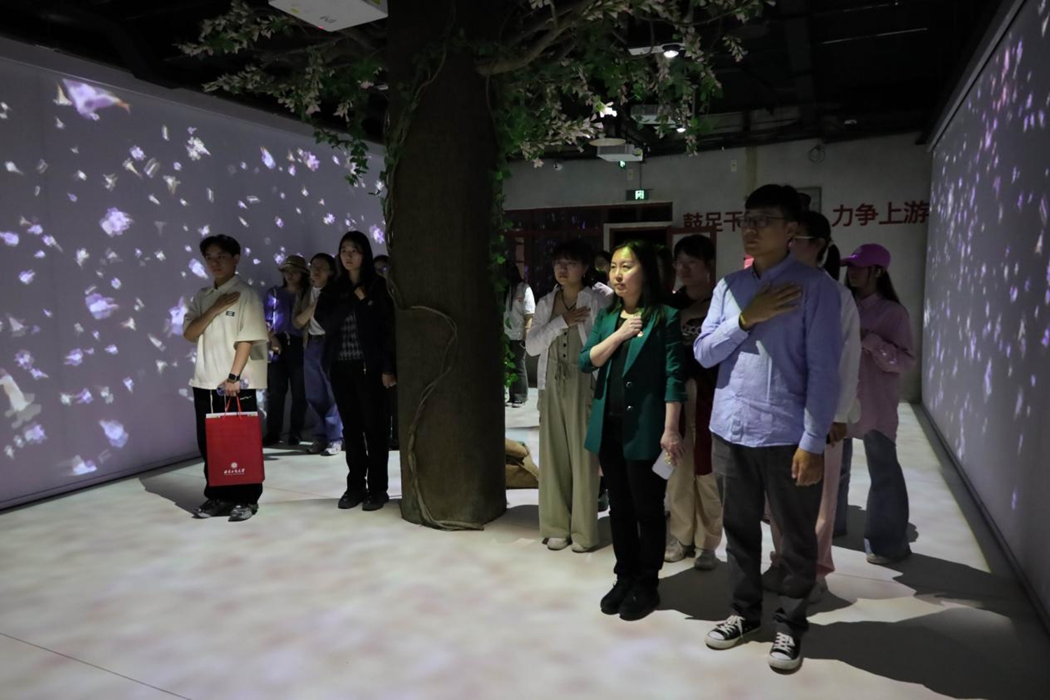 “沉浸式”現場教學最后,全體學員肅立于黨旗前,莊重重溫入黨誓詞。參與師生一致表示,本次學習方式新穎、內容豐富,情感真實而深遠,讓大家不僅“看見”焦裕祿同志,更“走進”他的精神世界。