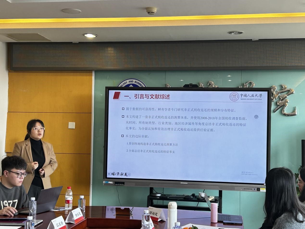 中國(guó)人民大學(xué)曾傅雯博士報(bào)告了工作論文《中國(guó)非正式稅收返還:測(cè)算與分析》,文章構(gòu)建了一套非正式稅收返還的測(cè)算體系,并使用2008-2018年全國(guó)稅收調(diào)查數(shù)據(jù),從時(shí)間、所有制類(lèi)型、行業(yè)類(lèi)別、地區(qū)經(jīng)濟(jì)屬性等角度總結(jié)非正式稅收返還的特征化事實(shí),研究發(fā)現(xiàn)全國(guó)層面的非正式稅收返還規(guī)模呈階段性變動(dòng),但占全國(guó)一般公共預(yù)算收入和全國(guó)稅收收入的比重總體呈下降趨勢(shì);非正式稅收返還水平與地區(qū)經(jīng)濟(jì)發(fā)展水平、營(yíng)商環(huán)境、經(jīng)濟(jì)發(fā)展目標(biāo)、財(cái)政收入結(jié)構(gòu)密切相關(guān)。