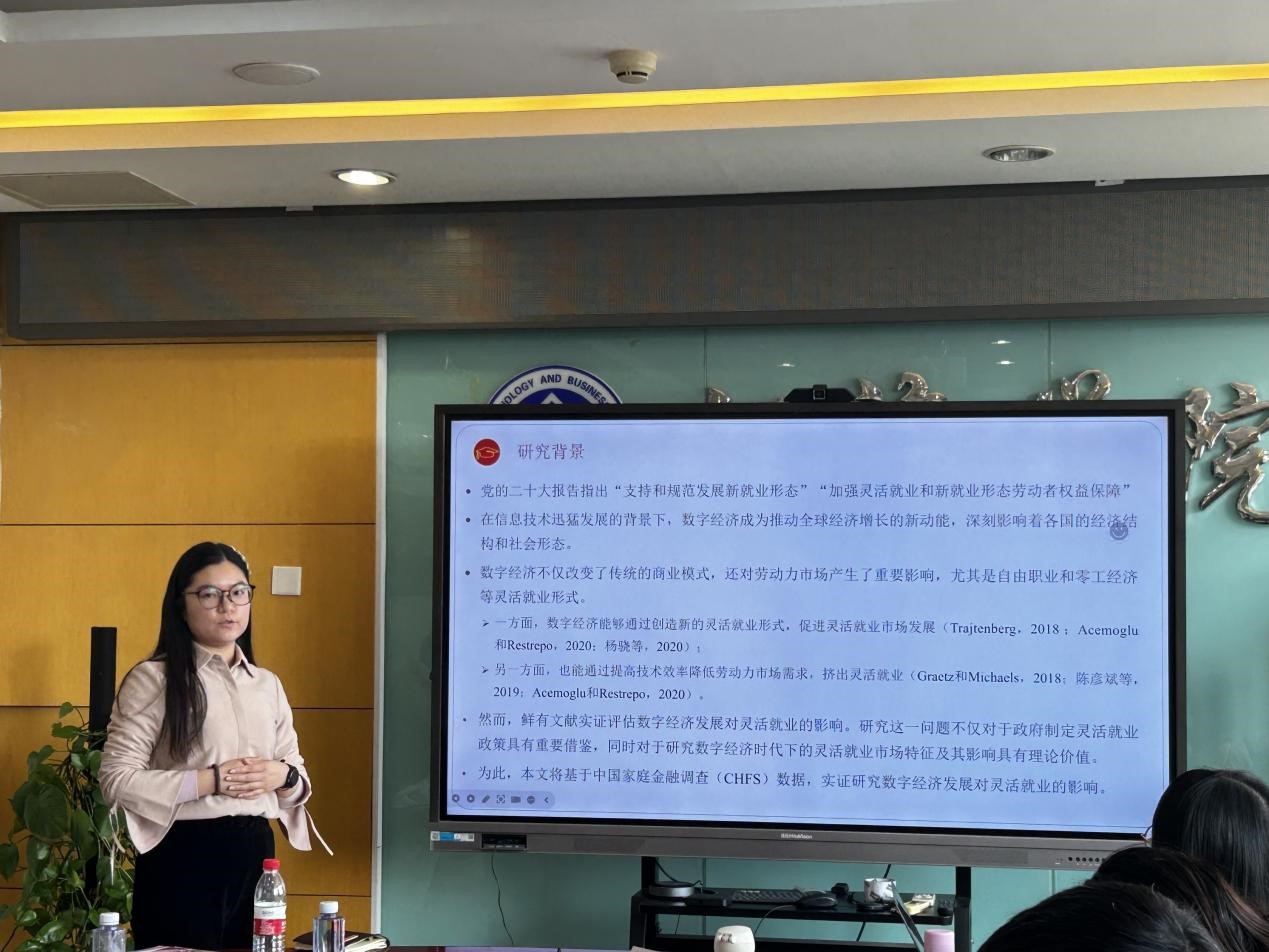 北京大學(xué)孫錦萍博士報(bào)告了工作論文《數(shù)字經(jīng)濟(jì)發(fā)展的靈活就業(yè)效應(yīng):來(lái)自中國(guó)家庭金融調(diào)查的證據(jù)》,文章基于中國(guó)家庭金融調(diào)查(CHFS)數(shù)據(jù),實(shí)證研究數(shù)字經(jīng)濟(jì)發(fā)展對(duì)靈活就業(yè)的影響及其內(nèi)在機(jī)制,研究發(fā)現(xiàn)數(shù)字經(jīng)濟(jì)顯著抑制了靈活就業(yè);數(shù)字經(jīng)濟(jì)發(fā)展產(chǎn)生的替代效應(yīng)擠出了那些收入要求高、工作時(shí)間短和社會(huì)保障要求更高的靈活就業(yè)者;數(shù)字經(jīng)濟(jì)對(duì)非農(nóng)戶口和非東部地區(qū)勞動(dòng)者的靈活就業(yè)抑制效應(yīng)更強(qiáng)。