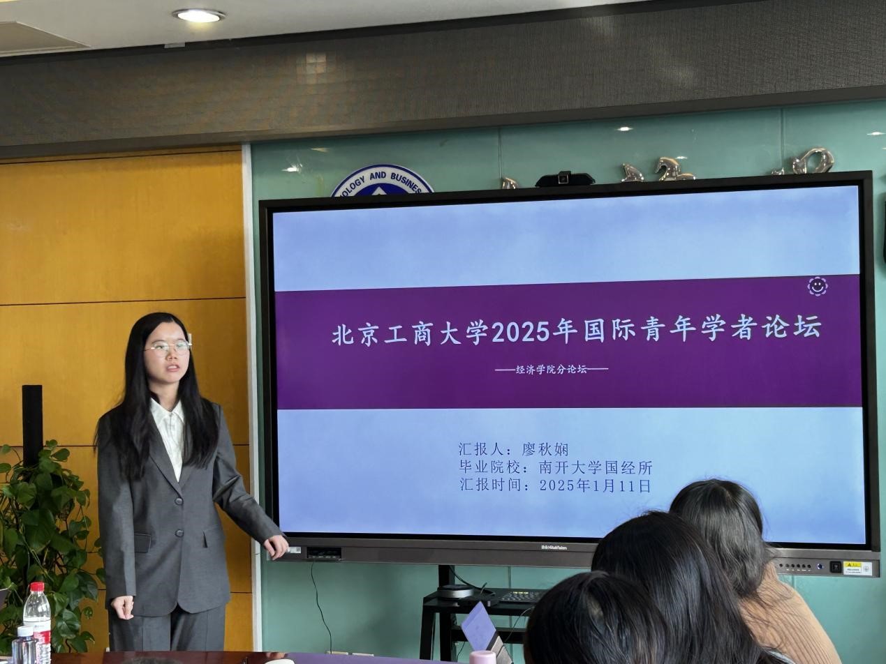1月11日,北京工商大學(xué)經(jīng)濟(jì)學(xué)院2025年國(guó)際青年學(xué)者論壇在阜成路校區(qū)舉辦。來(lái)自北京大學(xué)、南開(kāi)大學(xué)、中國(guó)財(cái)政科學(xué)研究院、中國(guó)人民大學(xué)和中央財(cái)經(jīng)大學(xué)的13位優(yōu)秀青年學(xué)者參加本次論壇。經(jīng)濟(jì)學(xué)院執(zhí)行院長(zhǎng)詹新宇教授、副院長(zhǎng)許敬軒教授、科學(xué)研究院人文社科處副處長(zhǎng)、經(jīng)濟(jì)學(xué)院金融系副教授岳鵬鵬、經(jīng)濟(jì)學(xué)院經(jīng)濟(jì)系系主任陳真玲教授、貿(mào)經(jīng)系周珺副教授、國(guó)貿(mào)易系李靜老師和經(jīng)濟(jì)系歐佳佳老師參加論壇研討活動(dòng)。