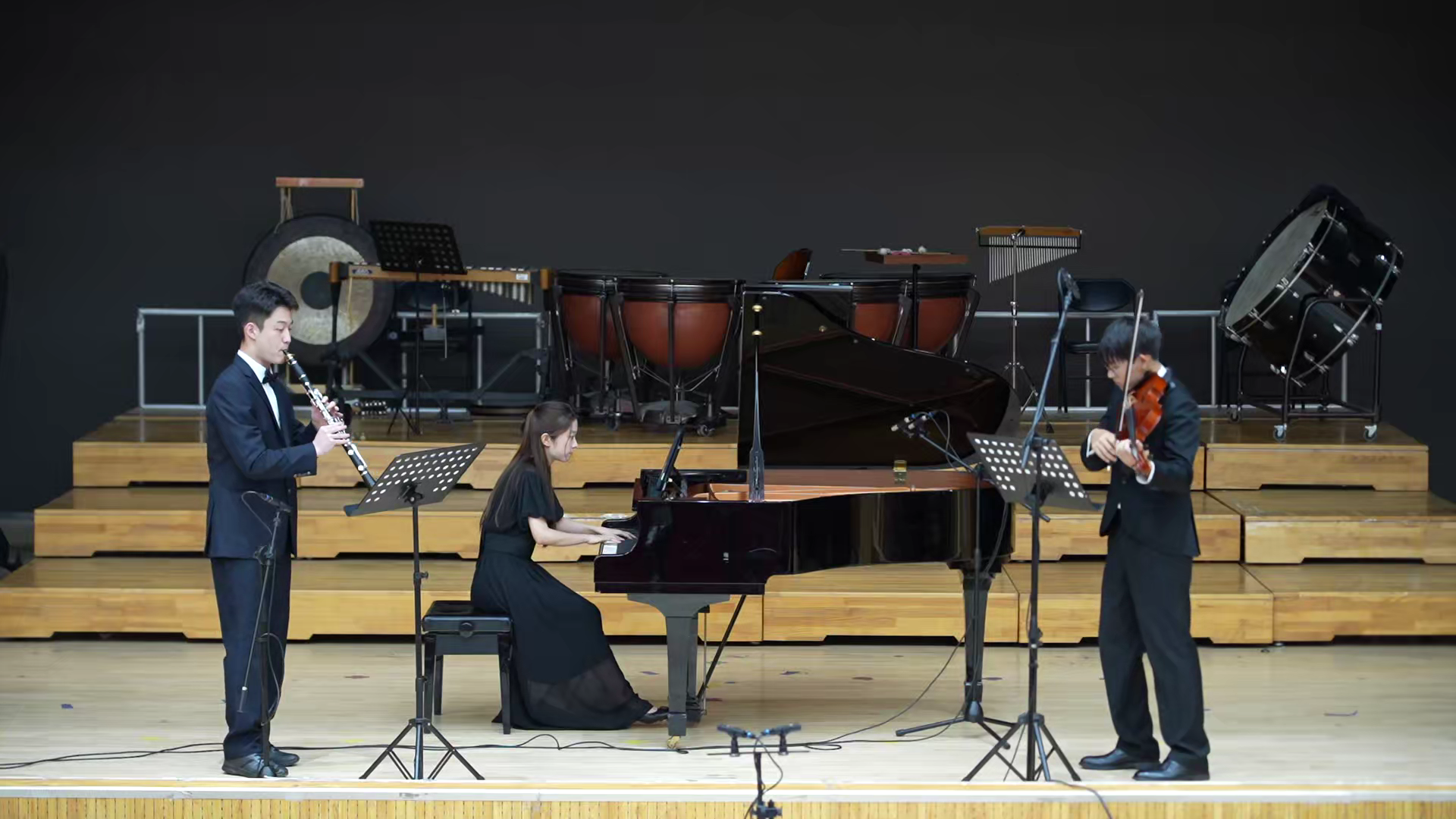 金獎作品《莫扎特為中提琴、單簧管和鋼琴而作的三重奏,KV498》榮登北京大學生音樂節優秀節目市級現場展演,在管樂團劉兆老師的悉心指導下,張欣彤、李天澤、劉昀罡三位演奏者精心準備、積極備賽。現場演奏中,由鋼琴、中提琴和單簧管默契配合,鋼琴的靈動旋律營造出優雅寧靜的氛圍,中提琴的醇厚音色融入其中,構建出美妙動人的音樂情境,而單簧管的悠揚旋律則靈動多變,為整首樂曲增添了無限魅力,生動展現了我校大學生藝術團的青春風采,贏得了現場觀眾的熱烈掌聲。