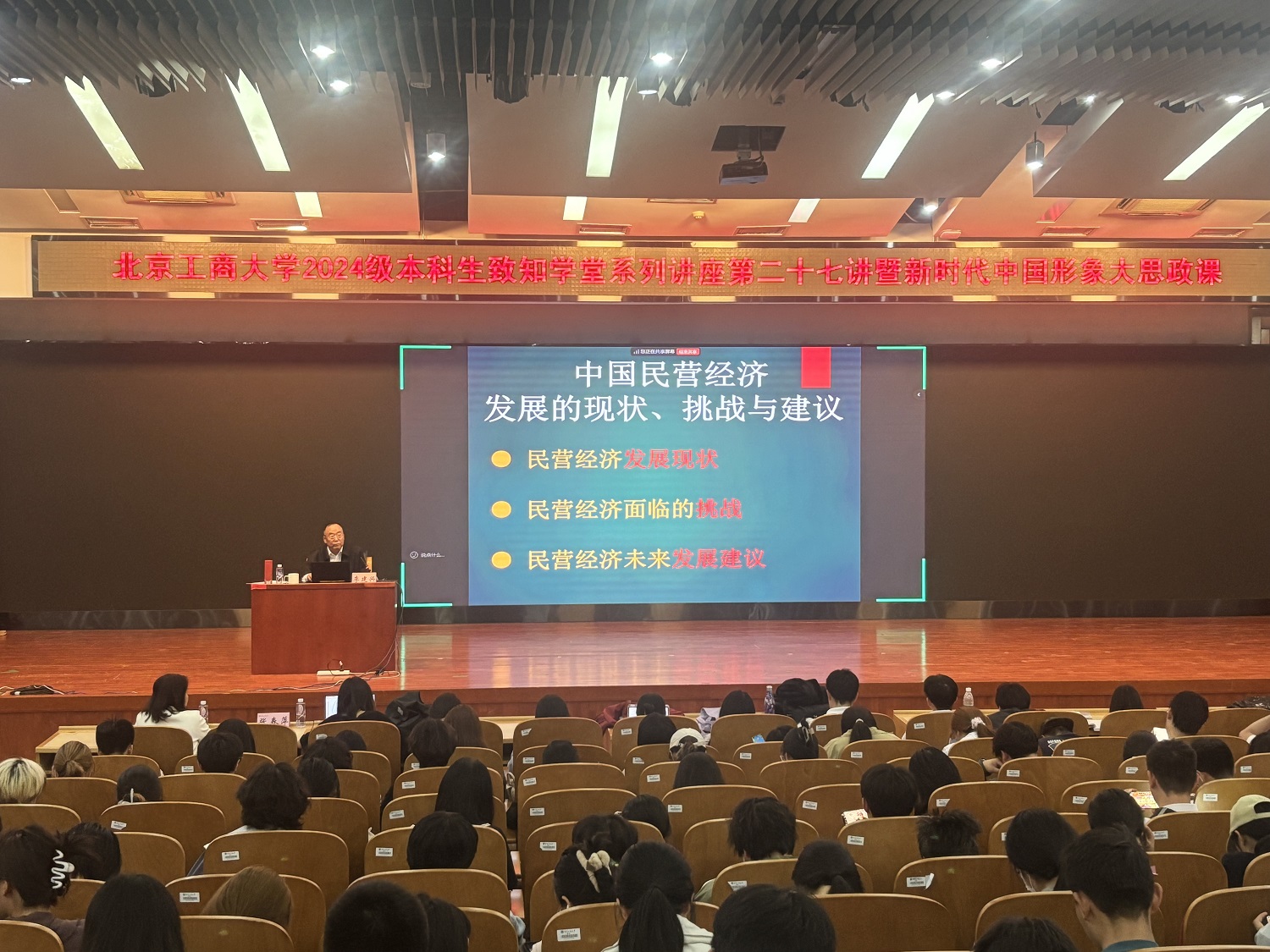 講座中,李建興教授全面分析我國民營經濟的發展現狀、發展規模及其在國民經濟中所占比重,結合大量例證分析民營經濟面臨的問題和挑戰。他從政策支持與制度保障、創新驅動與產業升級、市場拓展與國際化經營三個層面為民營經濟的未來發展提出了獨特的見解。在講座最后,李建興教授深情地回顧了自己的學生時代,用自己的親身經歷鼓勵學弟學妹們把握好“人生的第一個轉折點”,關注時政,認真學習,鍛煉身體,提升本領,規劃未來。