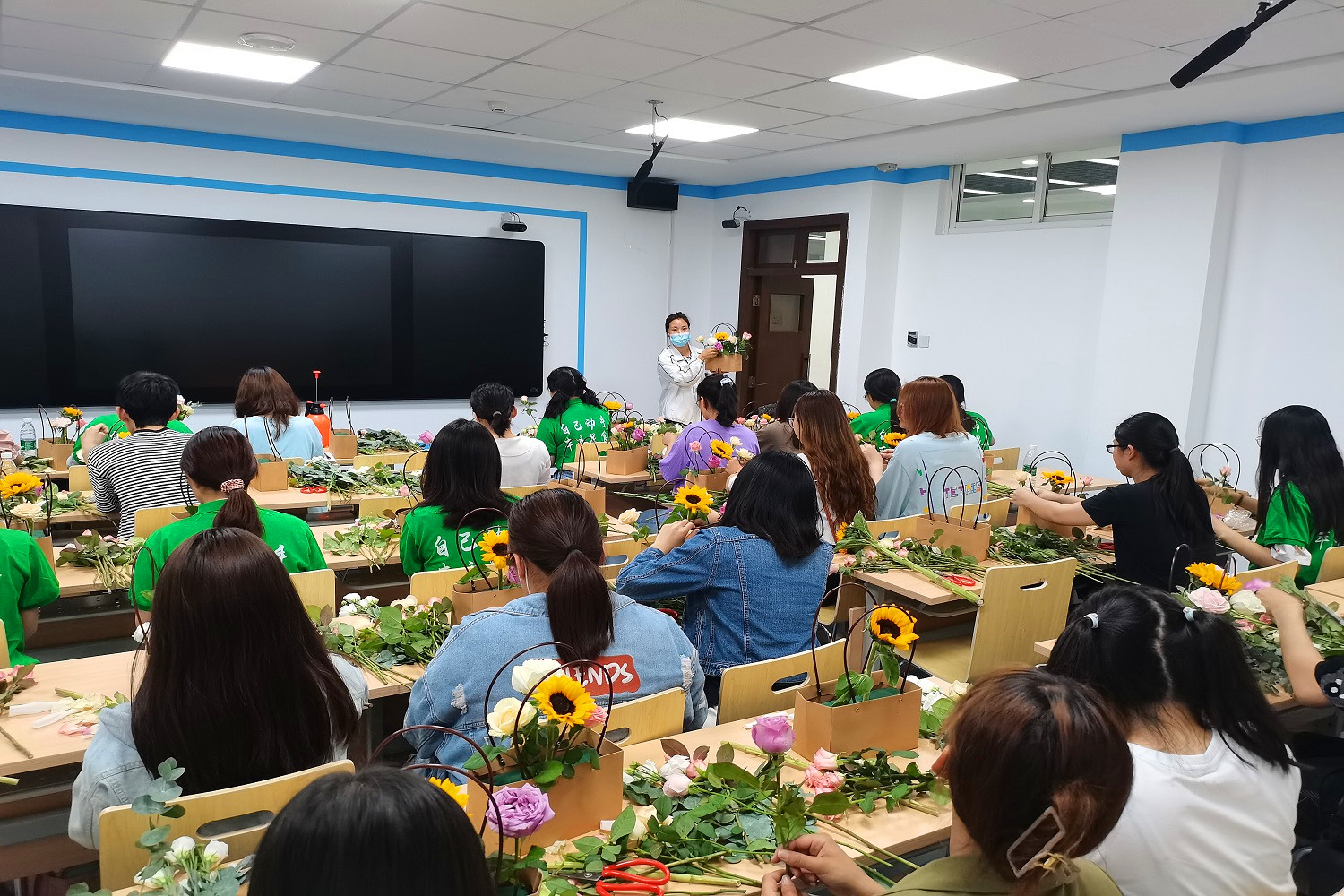學生處舉辦“永遠跟黨走 花香滿校園”大學生勞動教育花藝活動