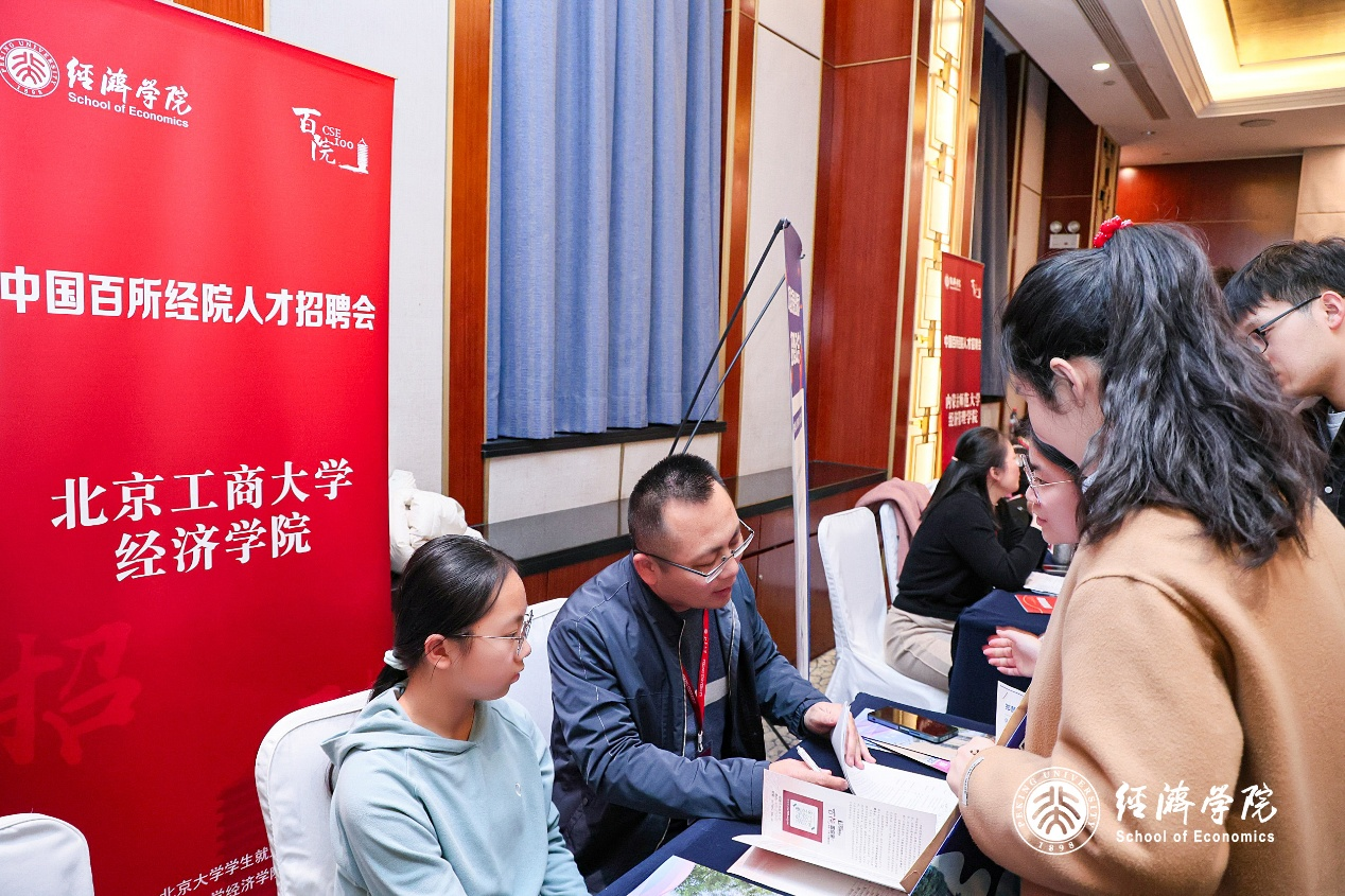 12月14日下午,本次論壇在北大博雅國際酒店舉辦了“百所經院人才招聘會”。招聘會吸引了海內外3000余名博士后、博士生參加,他們與來自全國148所高校和科研機構的招聘單位負責人進行了面對面交流。鄧浩應邀參加本次招聘會,與來自北京大學、清華大學、中國人民大學等高校的博士畢業生和博士后進行了全面接洽,并收到國內外名校應聘者的簡歷100余份。
