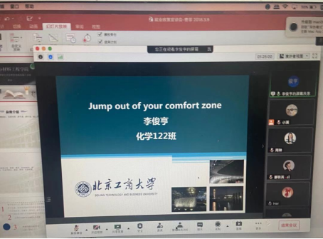 3月30日晚,化學與材料工程學院邀請中化集團、12級校友李俊亨和北京尚捷優藍科技有限公司11級校友虞旦通過線上會議的形式為學院學生作線上講座。兩位黨員校友圍繞學生面臨的職業定位不準、方向不明、自我認知不足、就業創業能力有待提高以及職業生涯規劃問題等方面進行了詳細講解。通過有趣的生涯探索互動,引導學生清晰認識個人的特質特點和優勢,找到自己感興趣的職業方向,圍繞個人的人生理想、愿景以及價值觀取向,確立人生及職業目標。