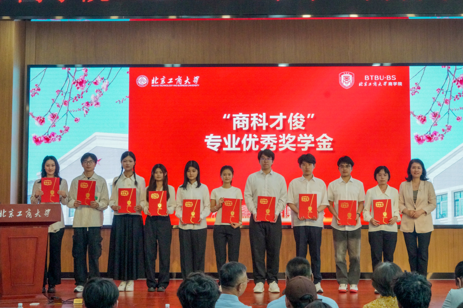 與會嘉賓為獲得商科才俊專業優秀獎學金、學術科技獎學金、優秀實習實踐獎學金和自強獎學金獲獎者進行了頒獎。