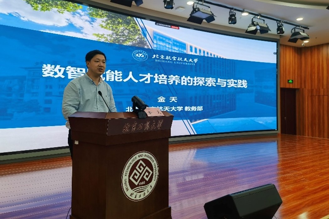 為深入貫徹落實(shí)國(guó)家教育數(shù)字化戰(zhàn)略行動(dòng),推進(jìn)我校“十四五”發(fā)展規(guī)劃,全面提升教師數(shù)智化教學(xué)能力,探索新時(shí)代人才培養(yǎng)模式改革,4月16日下午,學(xué)校在主校區(qū)組織開(kāi)展“數(shù)智賦能人才培養(yǎng)探索與實(shí)踐”專(zhuān)題講座。講座特別邀請(qǐng)北京航空航天大學(xué)教務(wù)部副部長(zhǎng)、博士生導(dǎo)師金天教授做專(zhuān)題分享。各教學(xué)單位教學(xué)院長(zhǎng)、系主任、教學(xué)秘書(shū)及骨干教師代表一百余人參加了此次講座,講座由教務(wù)處副處長(zhǎng)熊科主持。會(huì)議同步由騰訊會(huì)議進(jìn)行線上直播。