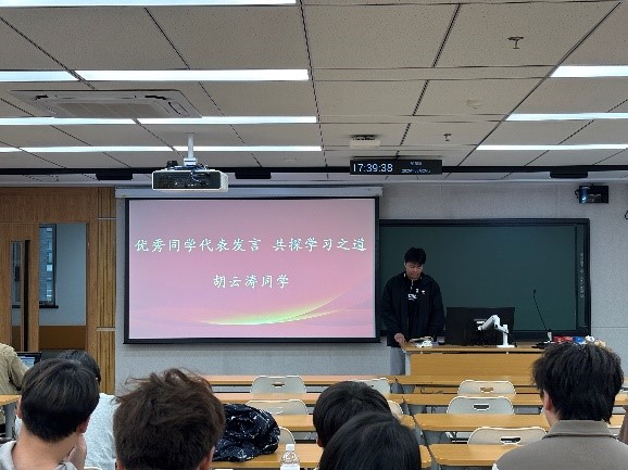 榜樣經驗分享,構建領學生態。各班組織優秀學生開展經驗分享活動。學生們就如何做好時間管理、提高課堂學習效率、有序開展科研競賽,講述個人心得和實用方法。通過榜樣力量,構建起良好的領學生態,激勵廣大學生樹立明確的目標、以更加飽滿的熱情投入到學習中,形成比學趕超、共同進步的優良學習氛圍。