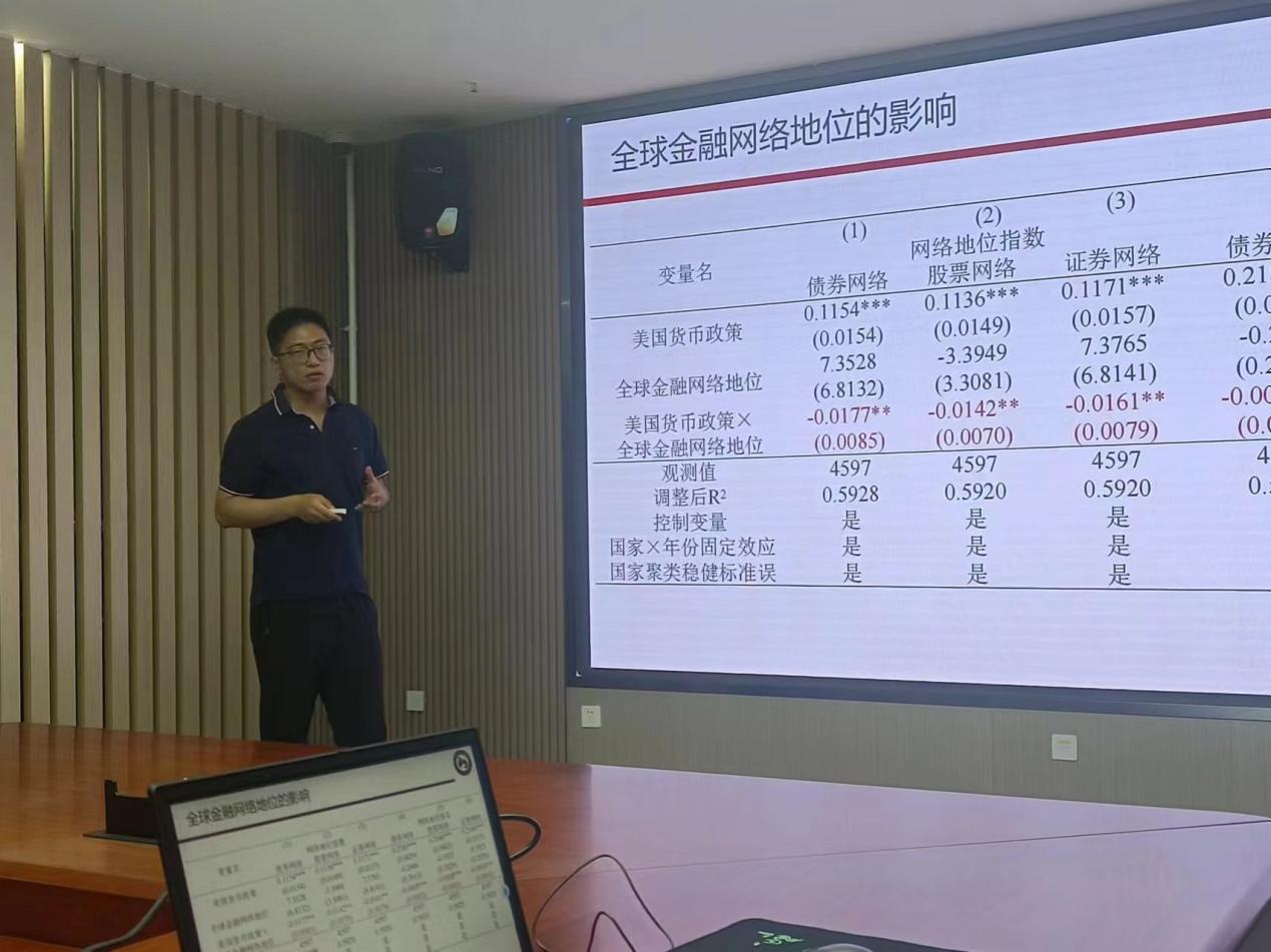 李興申報告了論文《美國貨幣政策與全球經濟周期同步性:基于全球金融網絡地位視角的分析》,深入探討了美國貨幣政策與全球經濟周期同步性的關系,并且采用了多種穩健性檢驗方法,增強了研究的科學性和嚴謹性,也為政策制定者提供了更準確的參考依據。王愛萍分別從論文的選題、研究貢獻和研究內容等方面進行了點評和建議。