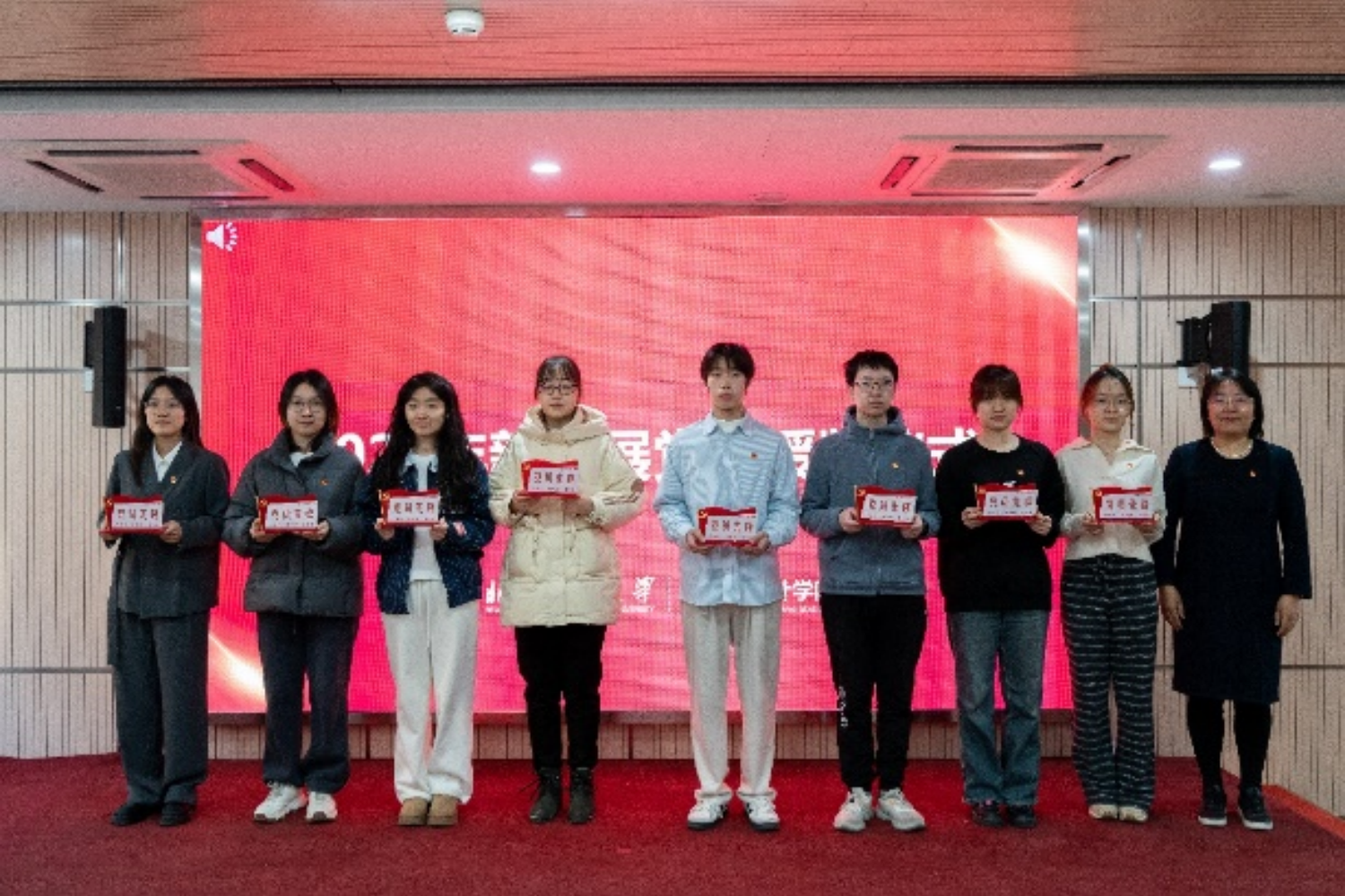 畢平平向2024年新發(fā)展的全體黨員表示熱烈祝賀,她講到,中國共產(chǎn)黨是有著青年色彩的馬克思主義政黨,作為學生黨員,應傳承偉大建黨精神,帶頭學習講政治、帶頭奮斗創(chuàng)佳績、帶頭服務比奉獻、帶頭自律樹形象,堅定理想信念,提高政治覺悟,加強思想學習,勇于擔當作為,發(fā)揮先鋒模范作用。她強調,授牌不僅是儀式,更是責任和使命的傳遞,意味著黨員要扛起責任,肩負使命,時刻以黨員標準嚴格要求自己,貢獻青春力量。