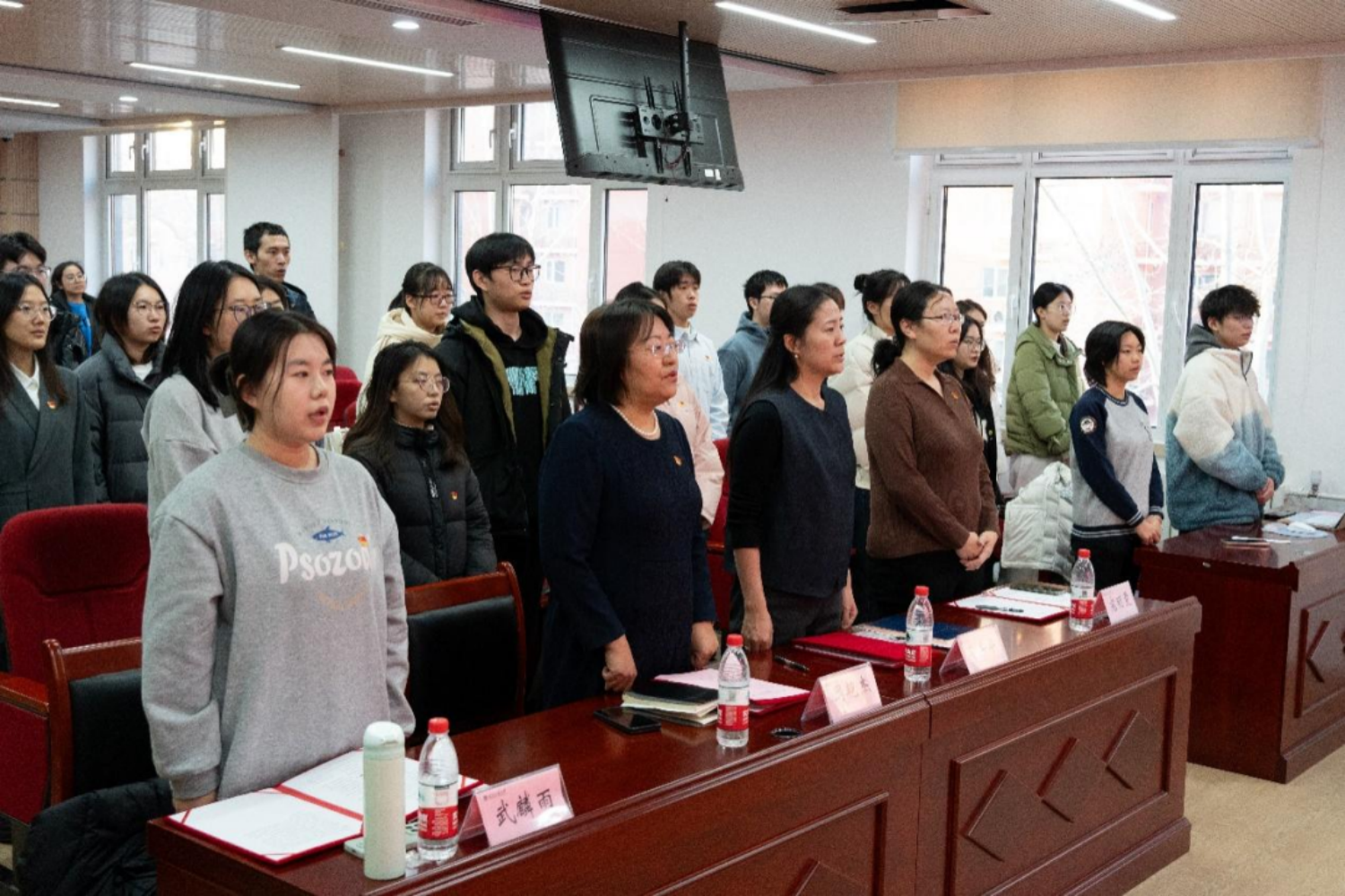 儀式在莊嚴的國歌中拉開帷幕,全體起立高唱國歌。