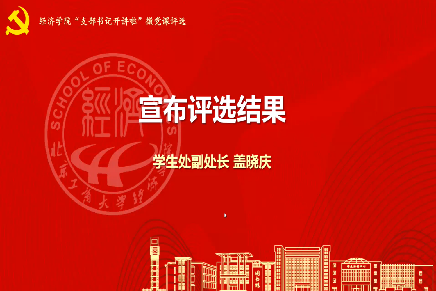 李艷春對活動背景進行了介紹。她講到,為了更好地落實三會一課制度,提升黨支部書記的理論水平、黨支部的組織力和凝聚力, 學院開展“一支部一品牌”“支部書記開講啦”微黨課活動。學生黨員積極提交申報材料,經過2個月的層層選拔,6位本科生和研究生黨支部書記進入決賽。他們的黨課切口小、寓意深、易傳播,切實講出支部特色、學科特色、經院特色的黨課。希望同學們可以從中汲取奮進力量。