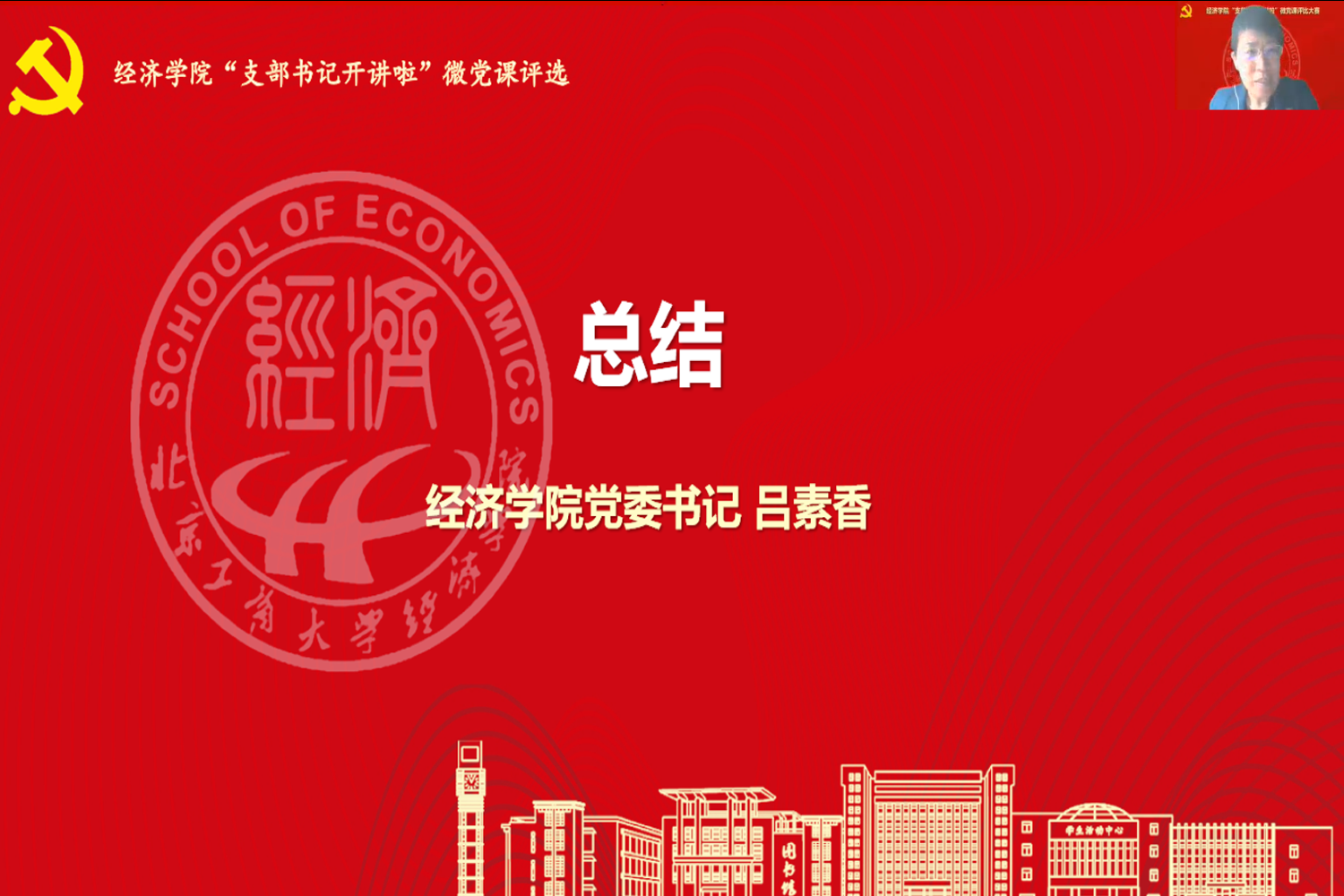 呂素香在致辭中表示,黨課是全體黨員提升思想素養,同時也是組織建設的重要組成部分。微黨課評比的形式不僅是對于黨支部書記思想和能力上的考驗,也是全體黨員提升政治素養、凝聚思想共識的過程。學生黨支部書記的黨課選題圍繞經世濟民、改革開放、共同富裕等蘊含豐富學科特色,將學術與理論緊密融合,是很好的探索,期待著他們為學生們帶來了一頓思想洗禮的精神大餐。