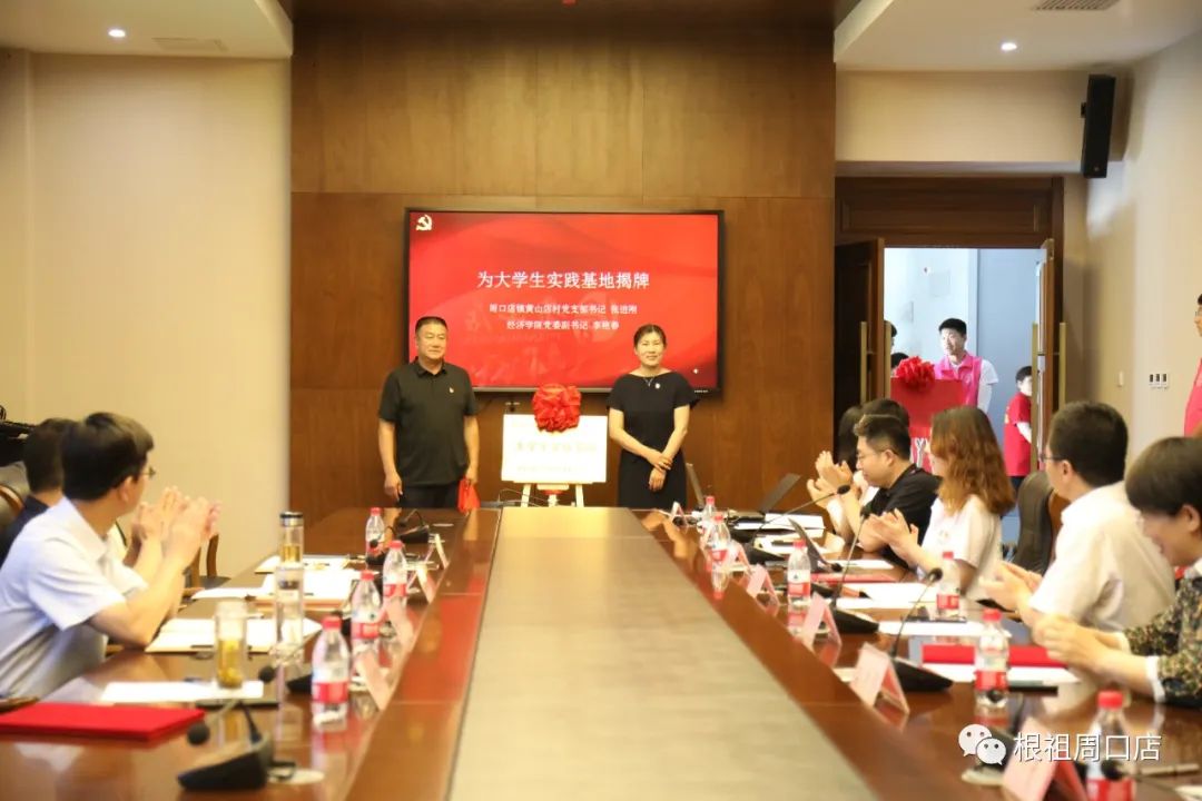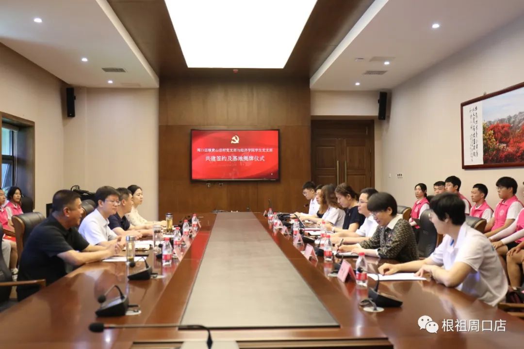 雙方就學生實踐助力鄉村振興,加強黨建合作進行深度交流。隨后,呂素香、張進剛簽訂經濟學院學生黨支部和黃山店村黨支部紅色“1+1”共建協議。與會領導分別為產學研基地、黨建育人基地、大學生實踐基地揭牌。