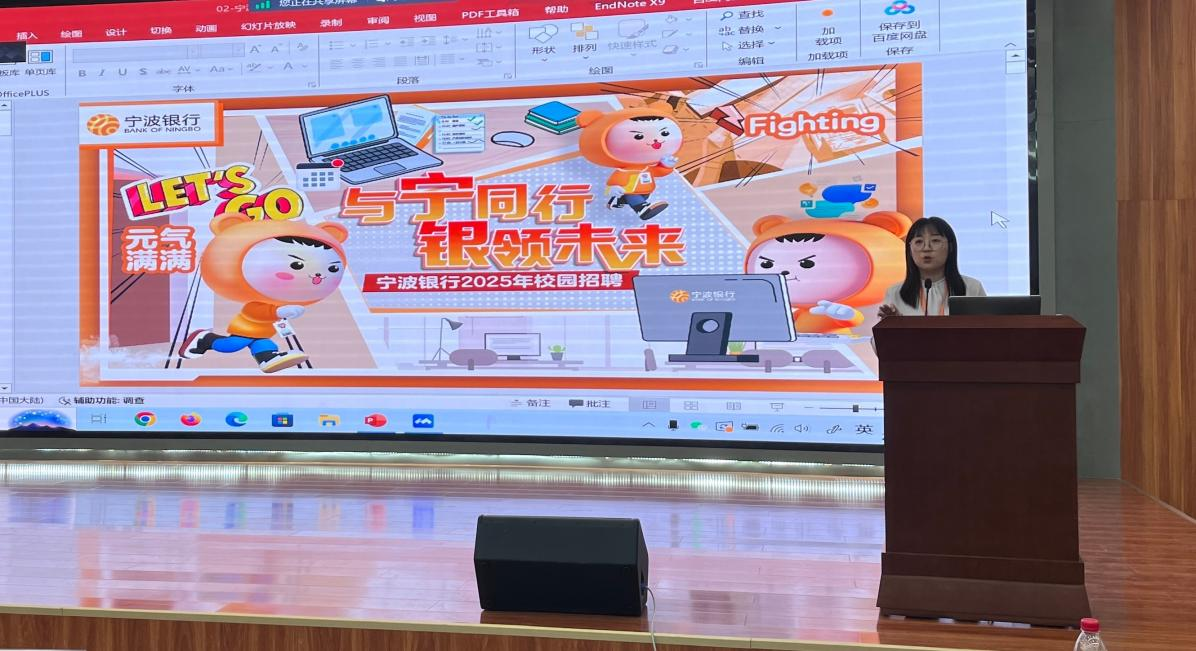 活動第二部分為銀行宣講會,特別邀請寧波銀行和興業銀行為同學們進行就業崗位宣講,由王子璇主持。