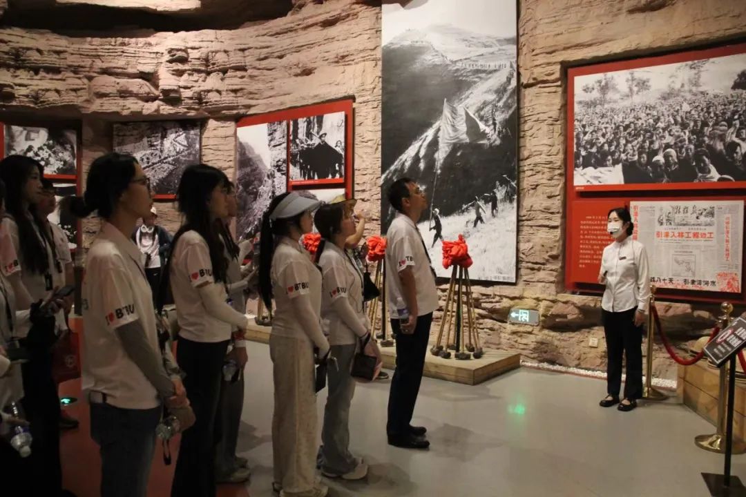 在河南林州紅旗渠,數(shù)學(xué)與統(tǒng)計學(xué)院“復(fù)興征程先鋒團”和馬克思主義學(xué)院的師生們,駐足于珍貴的歷史照片和實物面前。銹跡斑斑的鋼釬、布滿補丁的工裝,無聲地訴說著“十年修一渠”的壯舉:1250座山頭被削平,1525公里渠線蜿蜒成“人工天河”。在青年洞前,成員們觸摸著懸崖鑿痕,面向黨旗莊嚴宣誓,與當(dāng)年青年突擊隊的吶喊隔空呼應(yīng)。走進水電站,他們掄錘扛石、采集數(shù)據(jù),沉浸式體驗建渠的艱辛,讓專業(yè)知識扎根實地。沿著前輩們鑿石修渠的路線一路前行,親身感受戰(zhàn)天斗地的豪情壯志,深刻領(lǐng)悟“自力更生、艱苦創(chuàng)業(yè)、團結(jié)協(xié)作、無私奉獻”的紅旗渠精神。