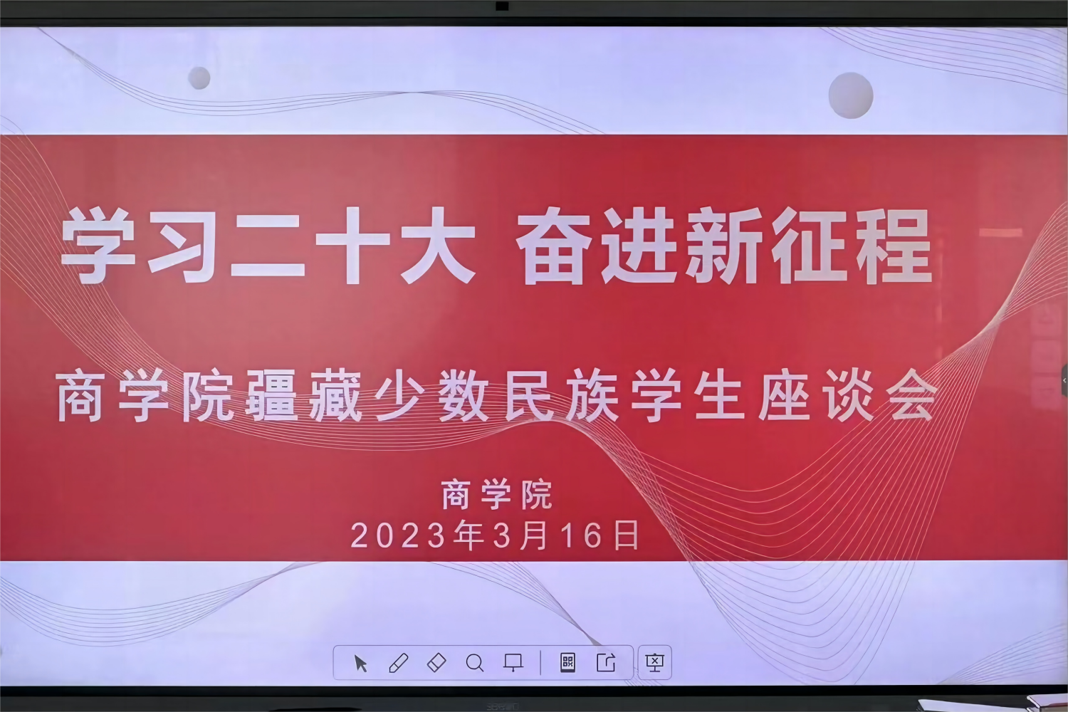 為深入了解民族學(xué)生學(xué)習(xí)生活情況,引導(dǎo)學(xué)生制定好發(fā)展規(guī)劃助力成長成才,3月16日商學(xué)院舉行“學(xué)習(xí)二十大、奮進(jìn)新征程”疆藏少數(shù)民族學(xué)生座談會(huì)。商學(xué)院黨委副書記張倩、學(xué)生處少數(shù)民族輔導(dǎo)員阿力達(dá)·翁哈爾拜、新疆派駐老師石銘蕓、商學(xué)院輔導(dǎo)員杜美涵、王琳菲及13名新疆、西藏籍少數(shù)民族學(xué)生參加會(huì)議。