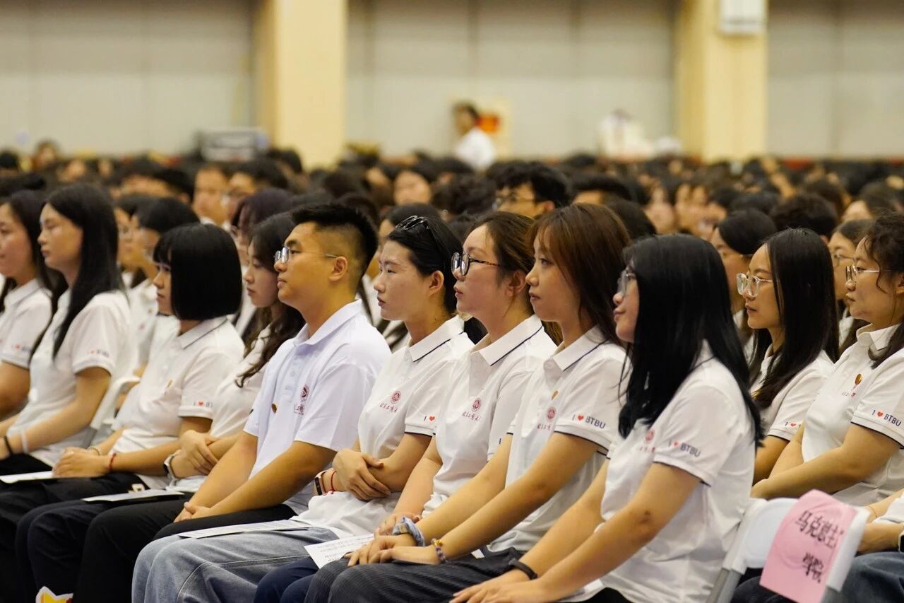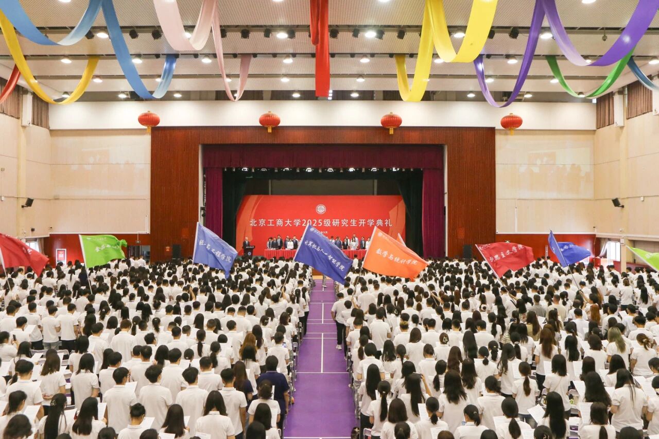 9月12日上午,北京工商大學2025級研究生開學典禮在良鄉主校區舉行。來自五湖四海的2000余名碩博新生齊聚文體館,滿載理想與希望的新旅程由此啟航。校領導沈千帆、郭建華、李中奇、宋曉欣、楊紅、徐丹丹、寇紅江出席,相關職能部門負責人,各學院領導,新生家長、研究生導師、輔導員及校友代表,全體2025級研究生新生參加。典禮由黨委副書記李中奇主持。