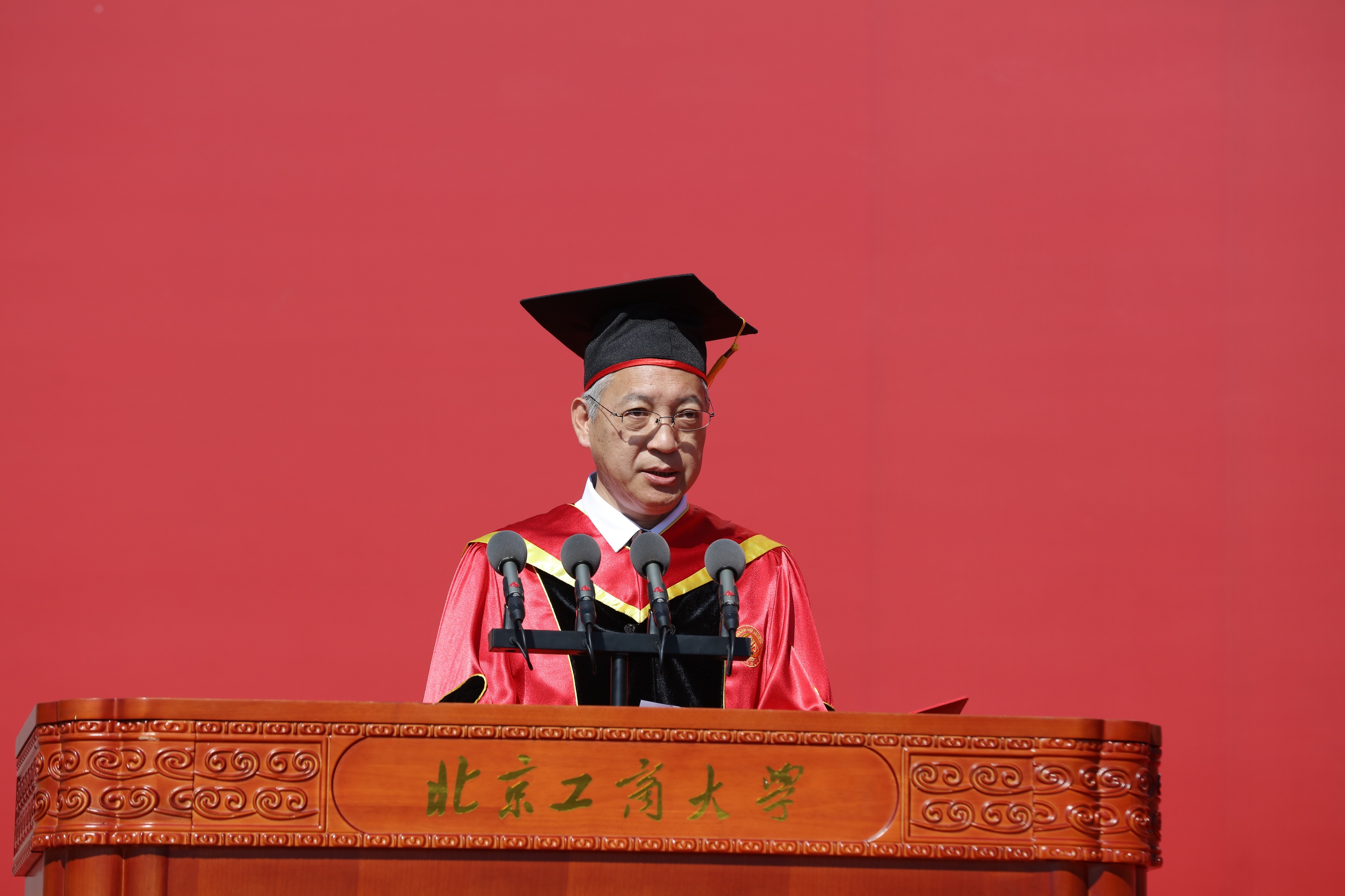 黨委副書記、校長(zhǎng)郭建華以《工商一體,護(hù)夢(mèng)遠(yuǎn)航》為題講話。他代表學(xué)校向畢業(yè)生們表示最衷心的祝賀和最美好的祝愿,向辛勤培育學(xué)子的老師們表示崇高的敬意,向給予學(xué)子們無(wú)限溫暖和力量的家長(zhǎng)們表示誠(chéng)摯的感謝。