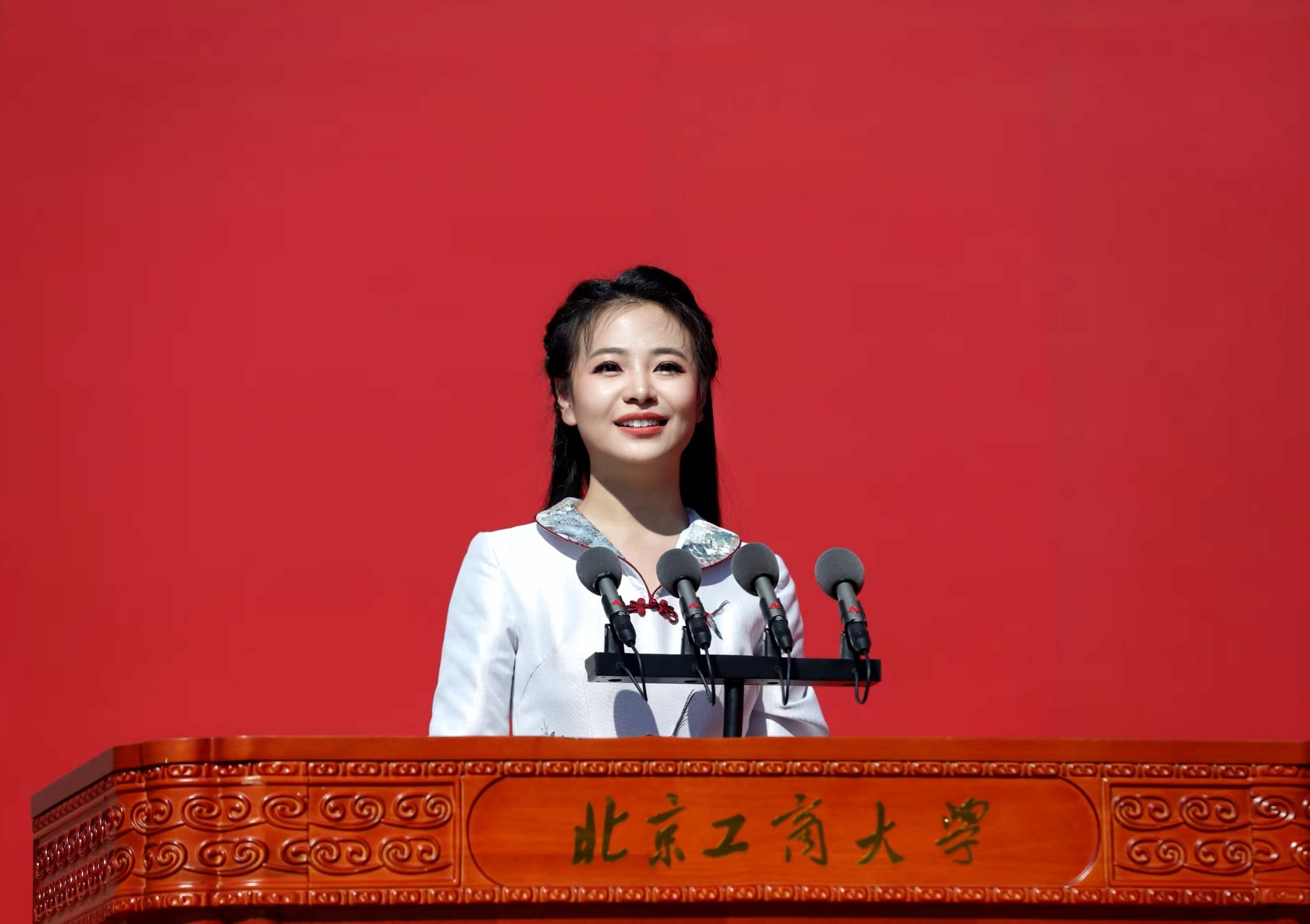 畢業(yè)生代表帶來(lái)詩(shī)朗誦《青春的選擇》,他們以聲作筆,以情為墨,誦出獨(dú)屬于北工商學(xué)子的青春詩(shī)篇。