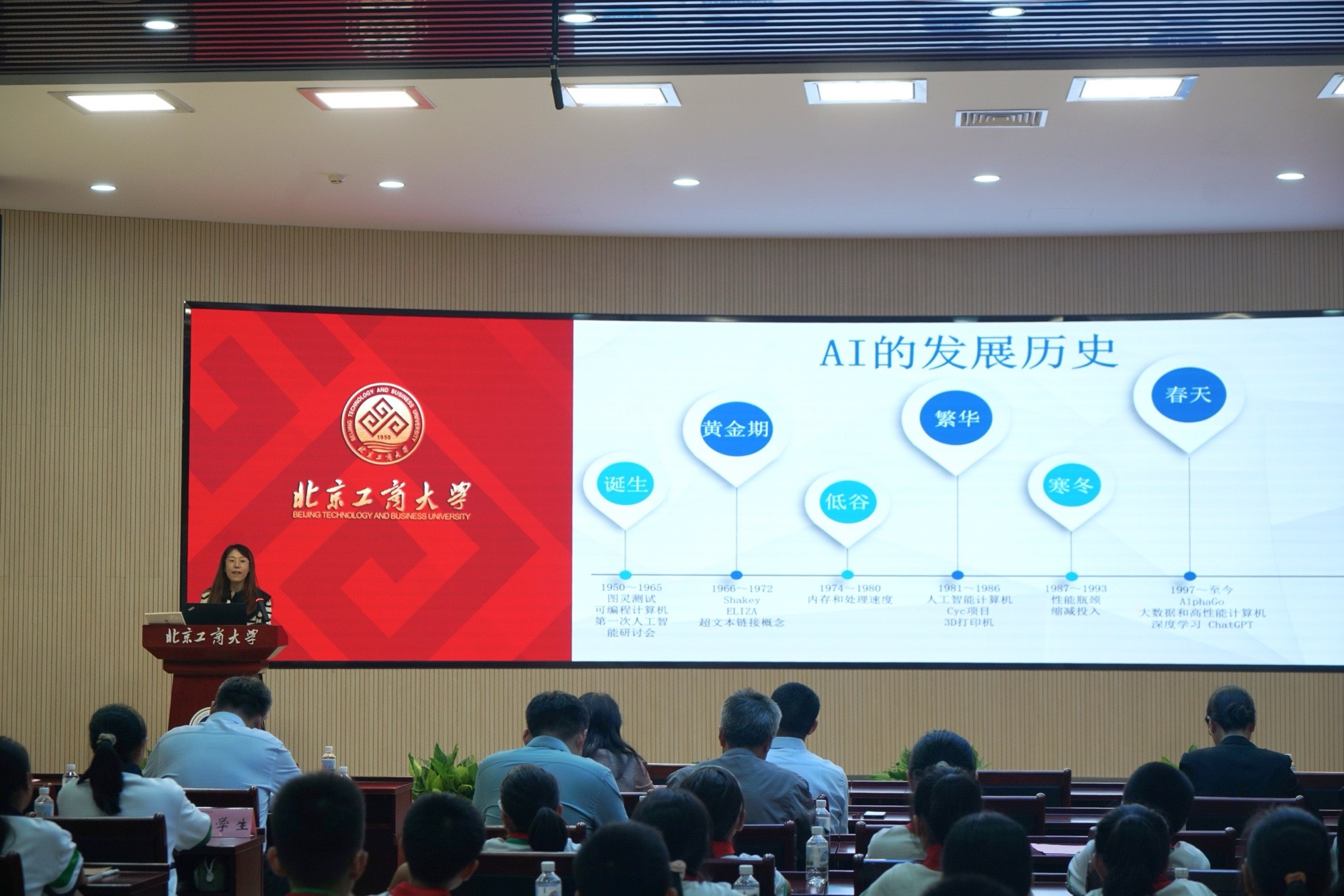 北京市教委二級巡視員張曉玲,房山區(qū)政府副區(qū)長陳仲秋,房山區(qū)委教育工委副書記、區(qū)教委主任于海俠,中國食品科學技術學會秘書長陳錚,中國計算機學會科普工委執(zhí)委劉延嘉,北京工商大學黨委副書記、校長郭建華,北京工商大學黨委常委、副校長寇紅江,以及房山區(qū)六所中小學校長共同出席儀式。