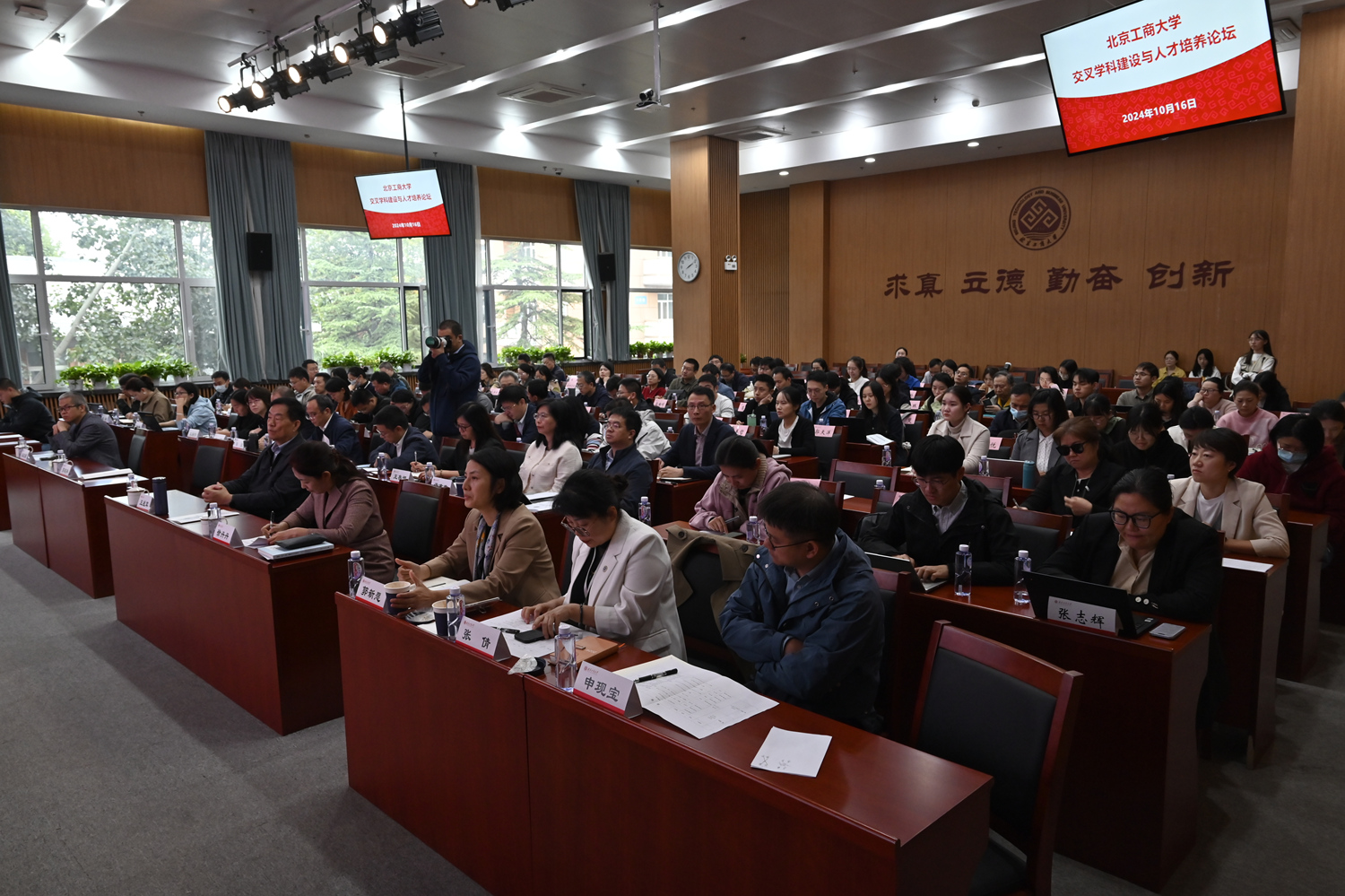 10月16日下午,學(xué)校舉行交叉學(xué)科建設(shè)與人才培養(yǎng)論壇。論壇分為專家報告和學(xué)校交叉學(xué)科建設(shè)項目評審兩個環(huán)節(jié),教育部中國學(xué)位與研究生教育學(xué)會副會長、北京理工大學(xué)研究生教育研究中心主任王戰(zhàn)軍教授、中國知網(wǎng)教育產(chǎn)品事業(yè)部產(chǎn)品總監(jiān)張志輝博士應(yīng)邀作專題報告。學(xué)校黨委副書記、校長郭建華,相關(guān)職能部門負(fù)責(zé)人,學(xué)部主任,各學(xué)院院長、分管學(xué)科副院長、學(xué)科秘書、教師代表等一百余人參加論壇。論壇分別由黨委常委、副校長徐丹丹,黨委研究生工作部部長郭新愿主持。