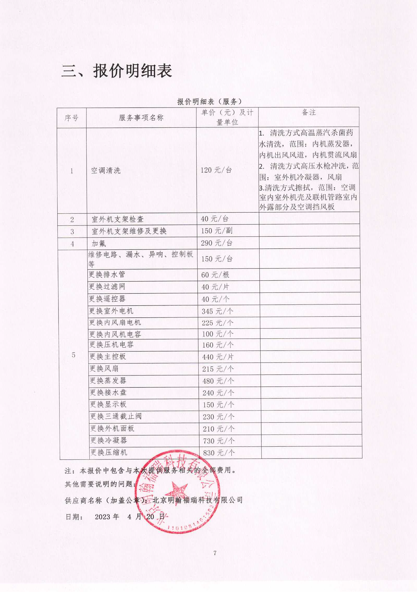 為了保障空調的正常運轉,對學校空調開展清洗、加氟、檢修工作。國資處于2023年5月選定北京漢卓空氣凈化設備有限責任公司提供服務。現因漢卓公司無法滿足項目質量要求,經處務會研究,重新選取北京明翰福瑞科技有限公司提供服務。