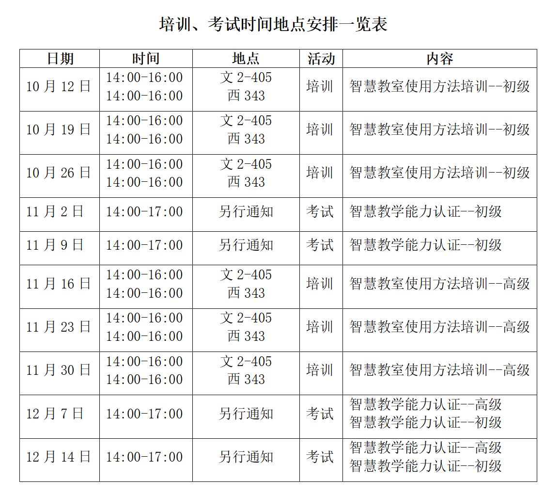 1. 全體任課教師需要參加“智慧教學能力認證(初級)”培訓,“智慧教學能力認證(高級)”培訓自愿參加。