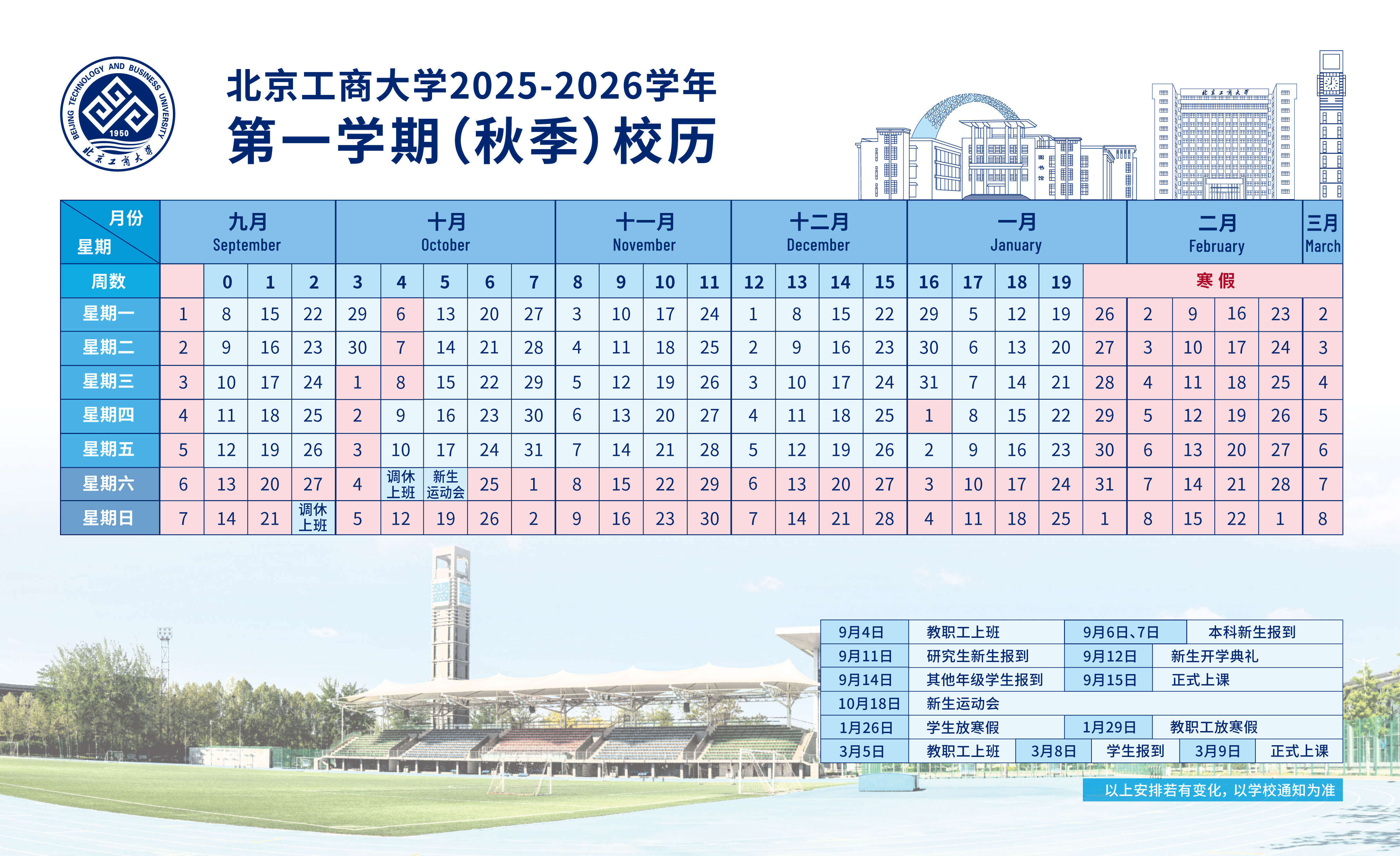 2025-2026學(xué)年第一學(xué)期(秋季)校歷