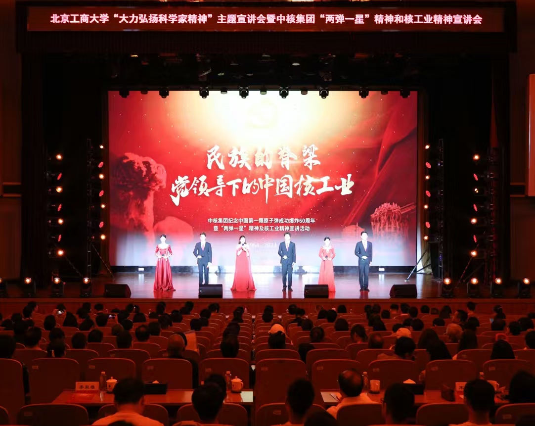 9月11日,恰逢教師節之際,北京工商大學“大力弘揚科學家精神”主題宣講會暨中核集團“兩彈一星”和核工業精神宣講會在良鄉主校區舉行。宣講采取“線上直播+線下觀看”方式進行。宣講會由人事處(黨委教師工作部)(教師發展中心)、學生處(黨委學生工作部)與中核集團聯合舉辦,中核集團新時代核工業精神宣講團成員和我校學生共同主持。學校黨委書記黃先開出席并致辭,黨委副書記宋曉欣、中國核工業科技館黨支部書記李梟雄、中國核工業科技館館長彭立新出席,學校黨委常委、宣傳部部長倪國華,學校辦公室主任兼保密辦公室主任王曉華,黨委教師工作部部長、人事處處長高麗華,學生處處長、黨委學生工作部部長鄭光及各職能部門、學院領導觀看宣講。各基層黨委、黨總支800余師生現場觀看,近3000人次線上觀看。