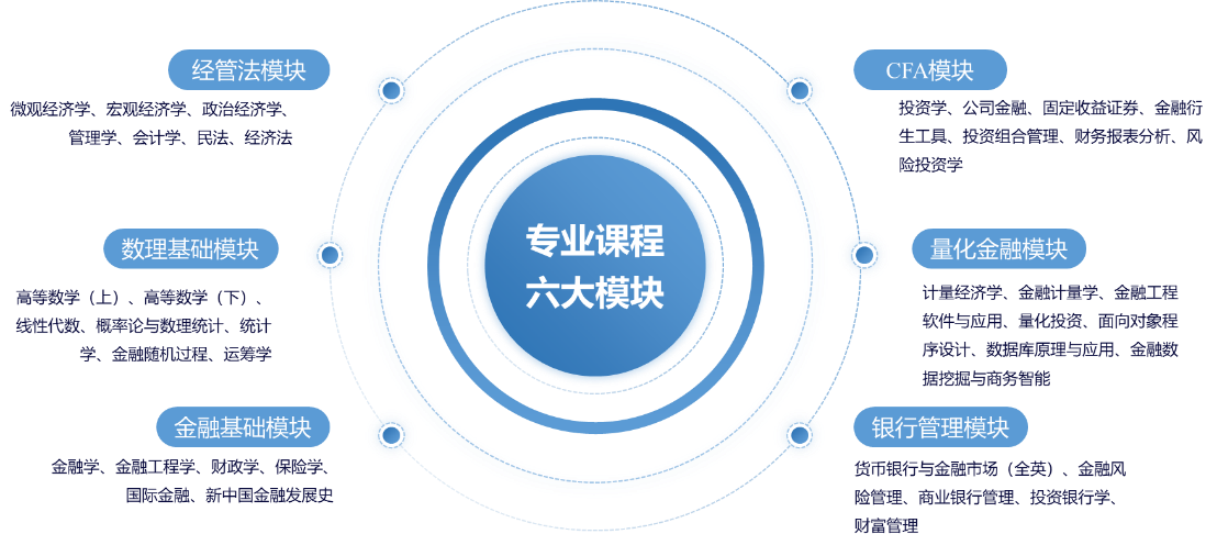 金融工程專業采用模塊教學模式,推出“經管法模塊”、“數理基礎模塊”、“金融基礎模塊”、“CFA模塊”、“量化金融模塊”和“銀行管理模塊”六大專業課程模塊,選修課數量達20門,為學生提供充分的個性化選擇空間。教育教學中充分尊重學生個性,不斷探打造全程教學,利用學校智慧化平臺等資源,鼓勵學生參與課前導讀、課上研討、案例分析與課堂展示,自主學習,深化知識掌握和運用。
