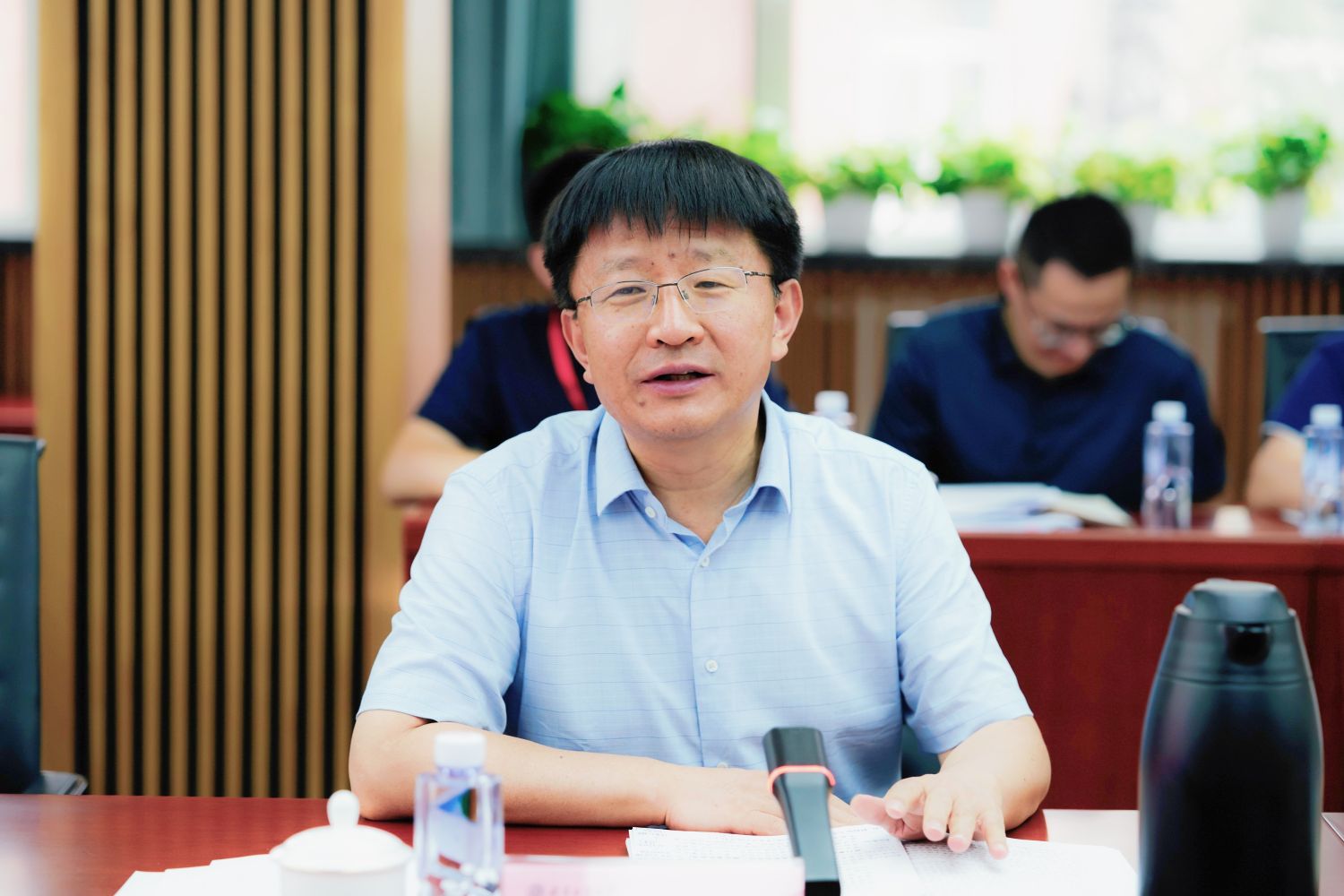 郭建華在總結發(fā)言中強調(diào),要以本次教育教學審核評估為契機,對學校的教育教學情況進行全面梳理。他指出,要進一步明確學校的培養(yǎng)特色,思考專業(yè)的動態(tài)調(diào)整方向以及教學模式的改革,堅持以本為本,全校各部門、各學院通力協(xié)作形成合力,共同為建設高水平的研究型大學努力奮斗。他從宏觀層面就教育教學審核評估工作提出了三點要求:一是要統(tǒng)一思想,提高站位,深刻領悟本科教育教學審核評估的核心要義;二是要把握機遇,迎接挑戰(zhàn),抓住審核評估的機遇和挑戰(zhàn),全面提升教育教學質(zhì)量;三是要同心協(xié)力,全員共建,形成全校上下共同推進審核評估工作的良好氛圍,高質(zhì)量完成各項審核評估工作,真正做到以評促建、以評促改、以評促管、以評促強。